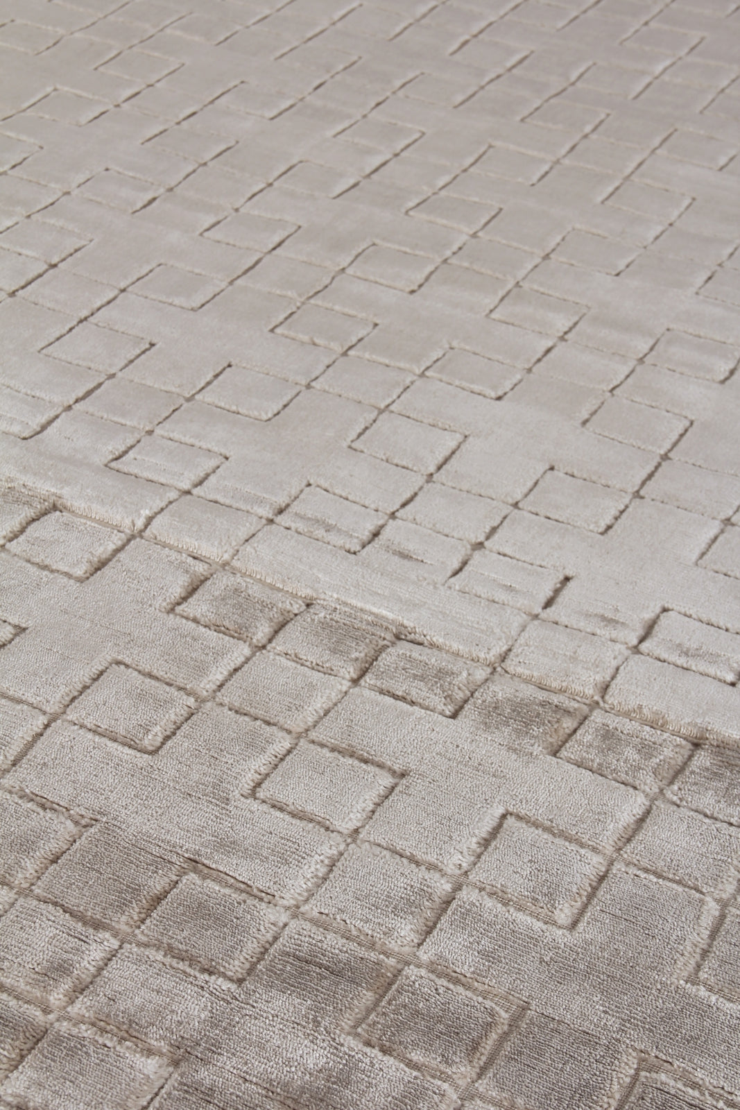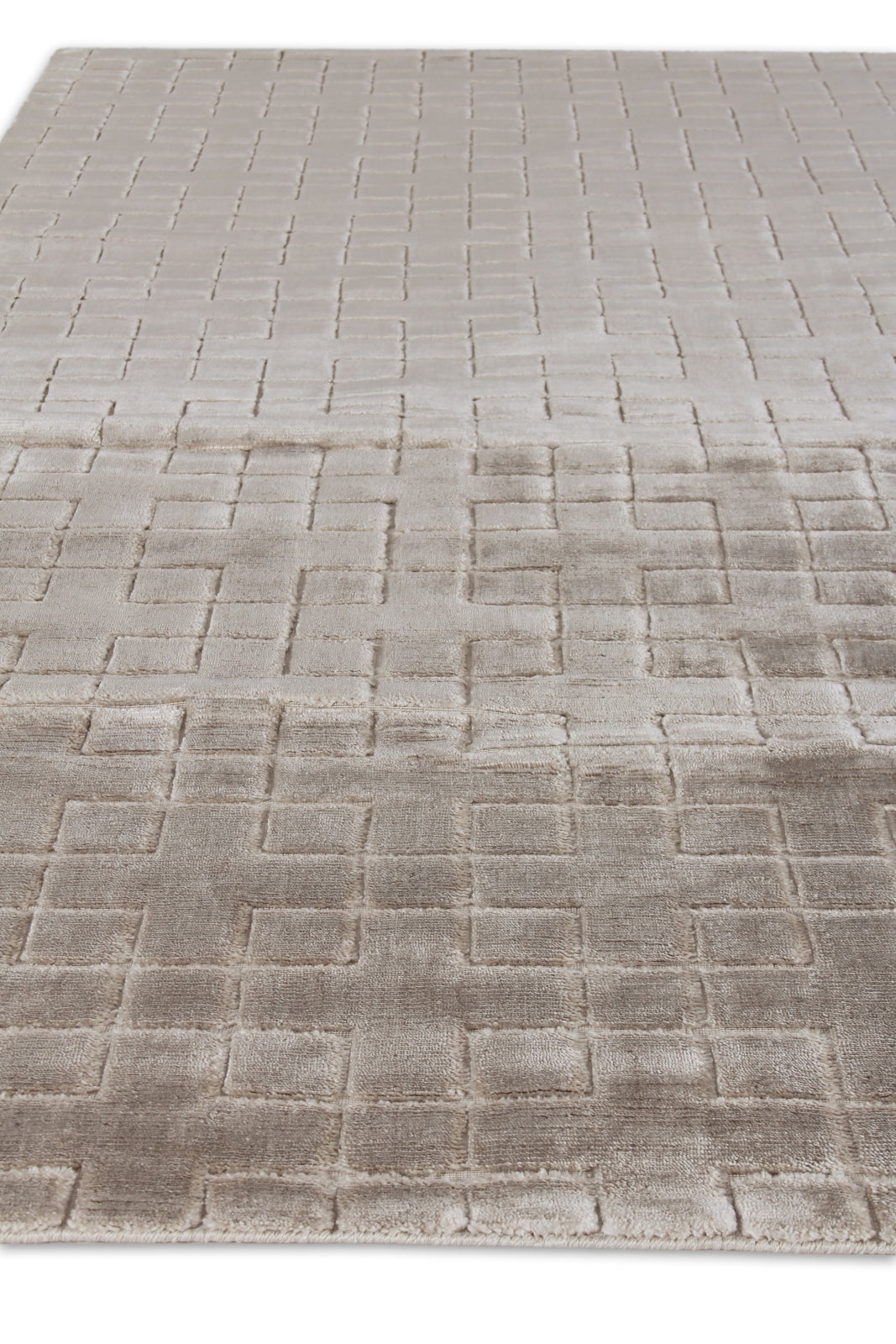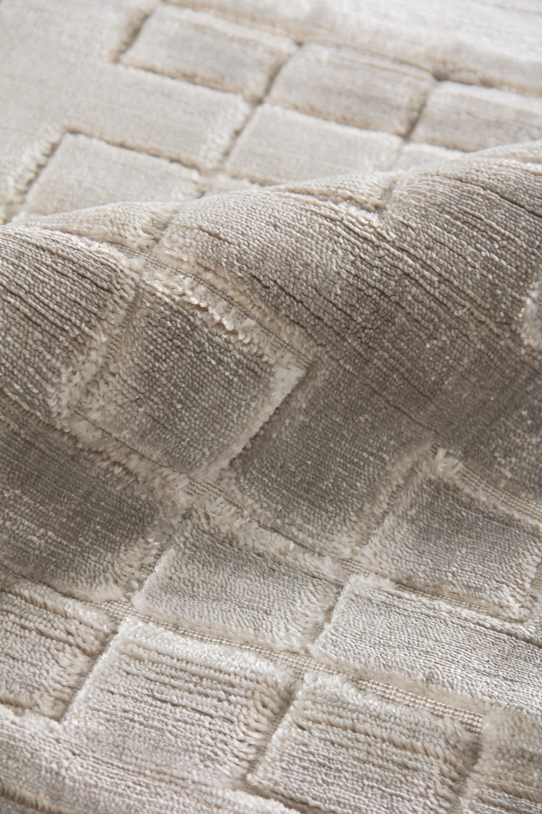 Our Smooch Geo rug is sure to shine in any setting. Each rug in this collection is hand made with fine Bamboo Silk and is designed with a refined textured pattern that is at once dynamic and sophisticated.