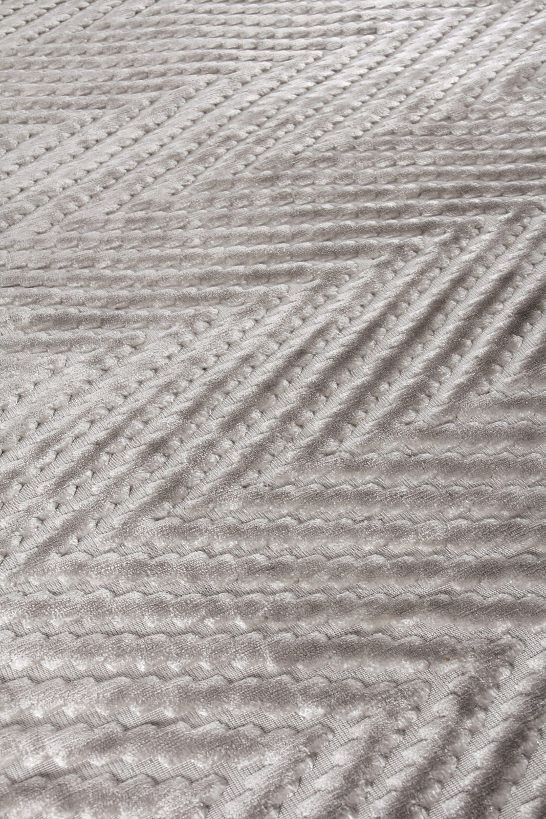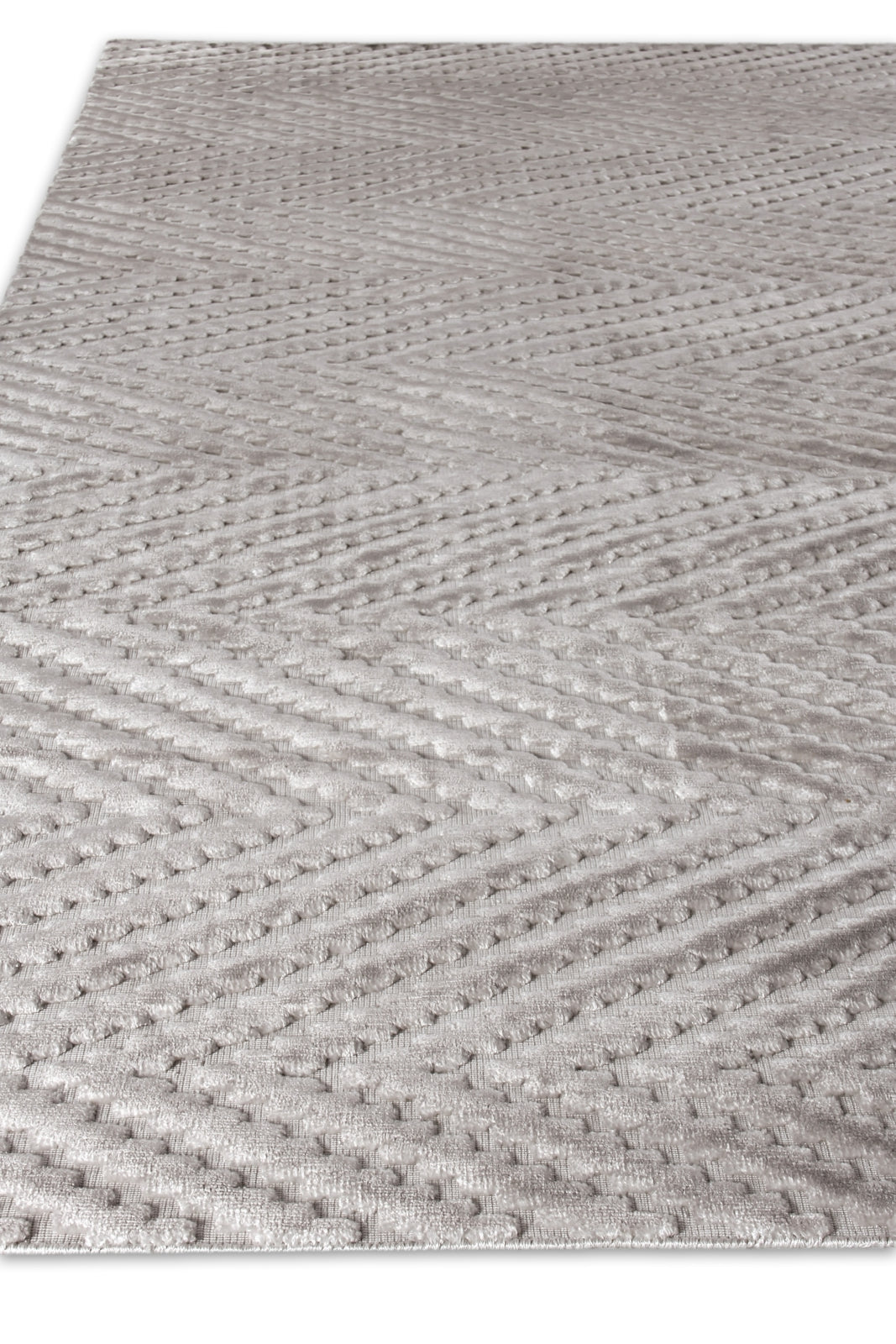 Our Smooch Geo rug is sure to shine in any setting. Each rug in this collection is hand made with fine Bamboo Silk and is designed with a refined textured pattern that is at once dynamic and sophisticated.
