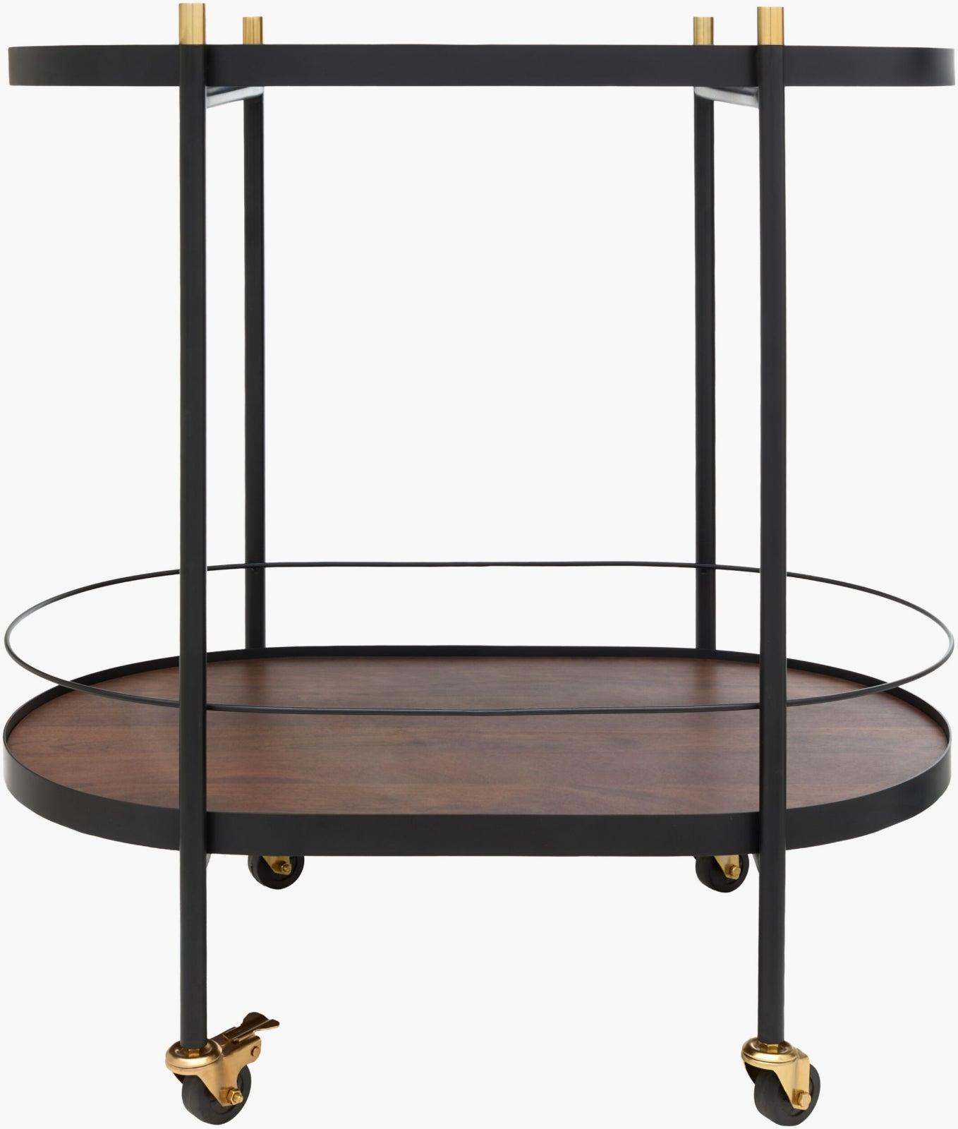 Add a touch of sophistication to your entertainment space with the Pearson Bar Cart. Designed with a fusion of glass and iron, this piece is an epitome of elegance and functionality. Manufactured in India, it exhibits a beautiful style that can effortlessly elevate any setting. The top glass surface is perfect for serving drinks or displaying your favorite spirits, while the sturdy iron base ensures long-lasting stability. This bar cart also prioritizes easy maintenance - simply wipe it clean with a dry cloth and steer clear from harsh cleaners to maintain its sleek finish. Indulge in stylish convenience for your hosting needs with the Pearson Bar Cart.