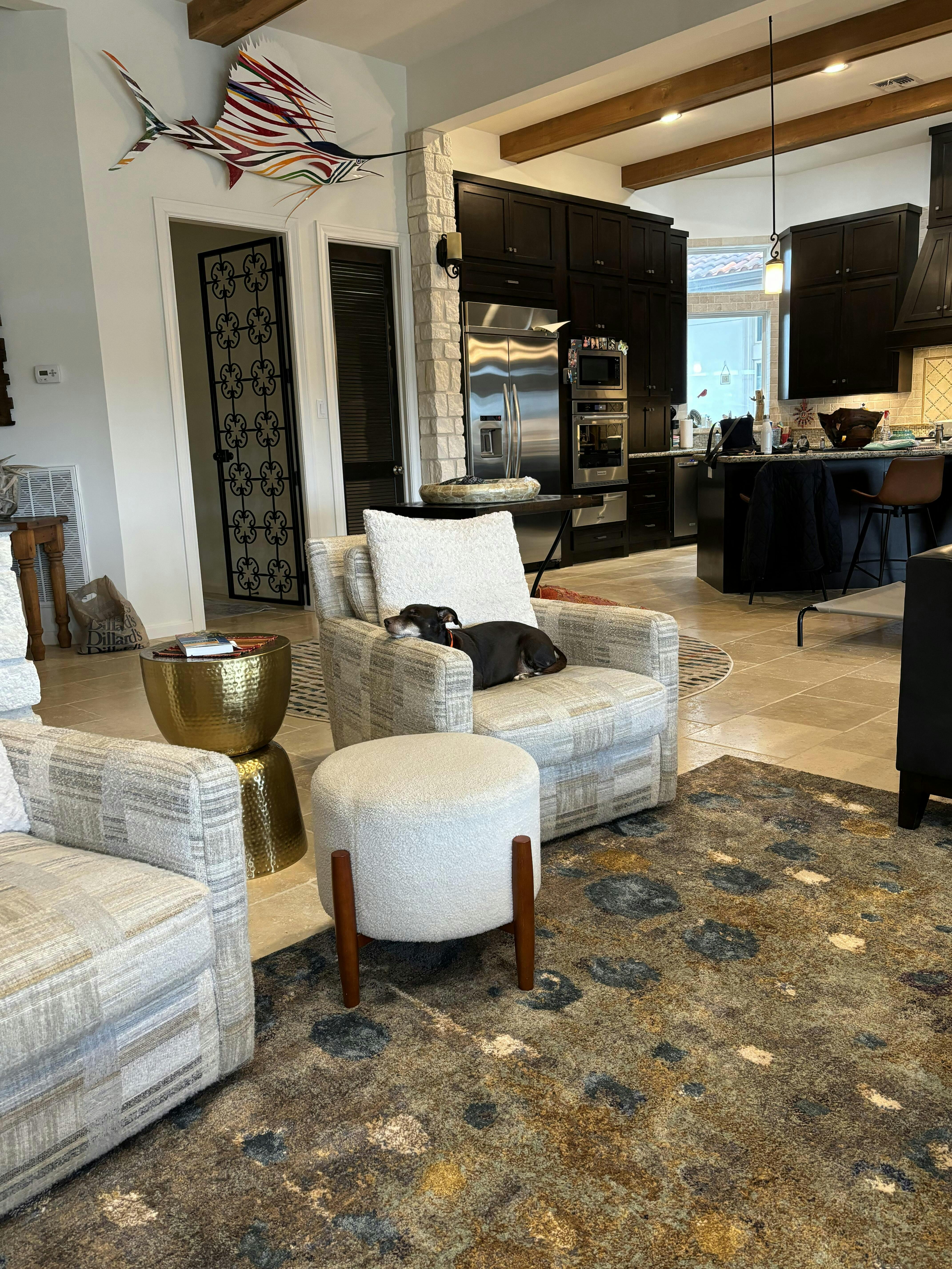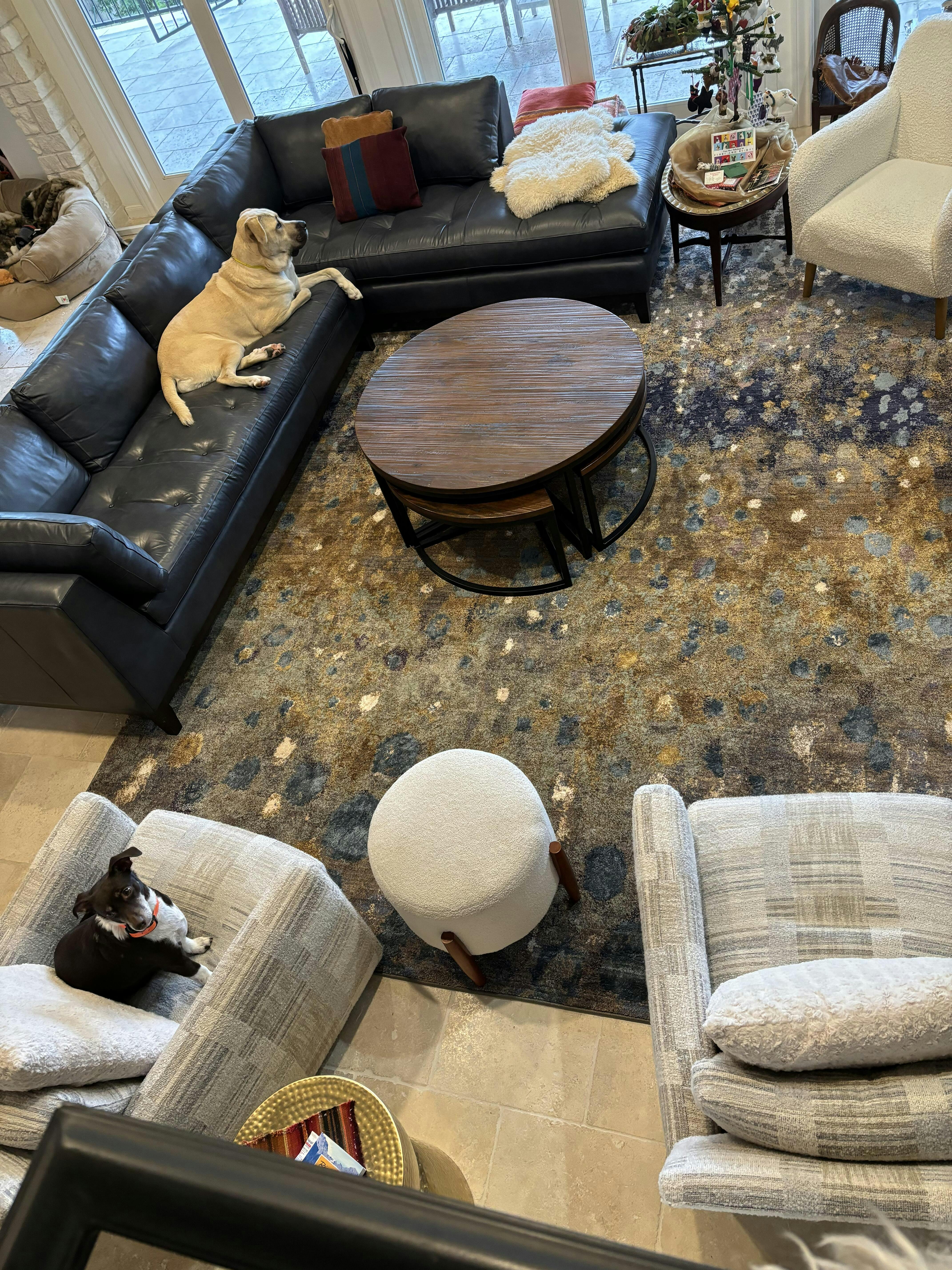 True to IRD’s description and photos, this rug is exactly for what we were hoping. The variety of colors give many options for decorating, yet are mostly muted in a natural, earthy way that is appealing, not overpowering. It reminds me of easy-going trail hikes over mossy cobblestones & creeks, purple haze blossoms along the way, with drops of dew falling from the trees-yet, all right in my comfy living room. The fibers are dense making walking & laying on surprisingly soft while keeping the tidy look a 1/2” pile height has to offer. Steve and his staff were helpful assisting us with the whole order and delivery process. They were personable, attentive, and communicative throughout. We also purchased the runner for our adjoining kitchen, which is a nice, soft complimentary piece to the larger area rug.
