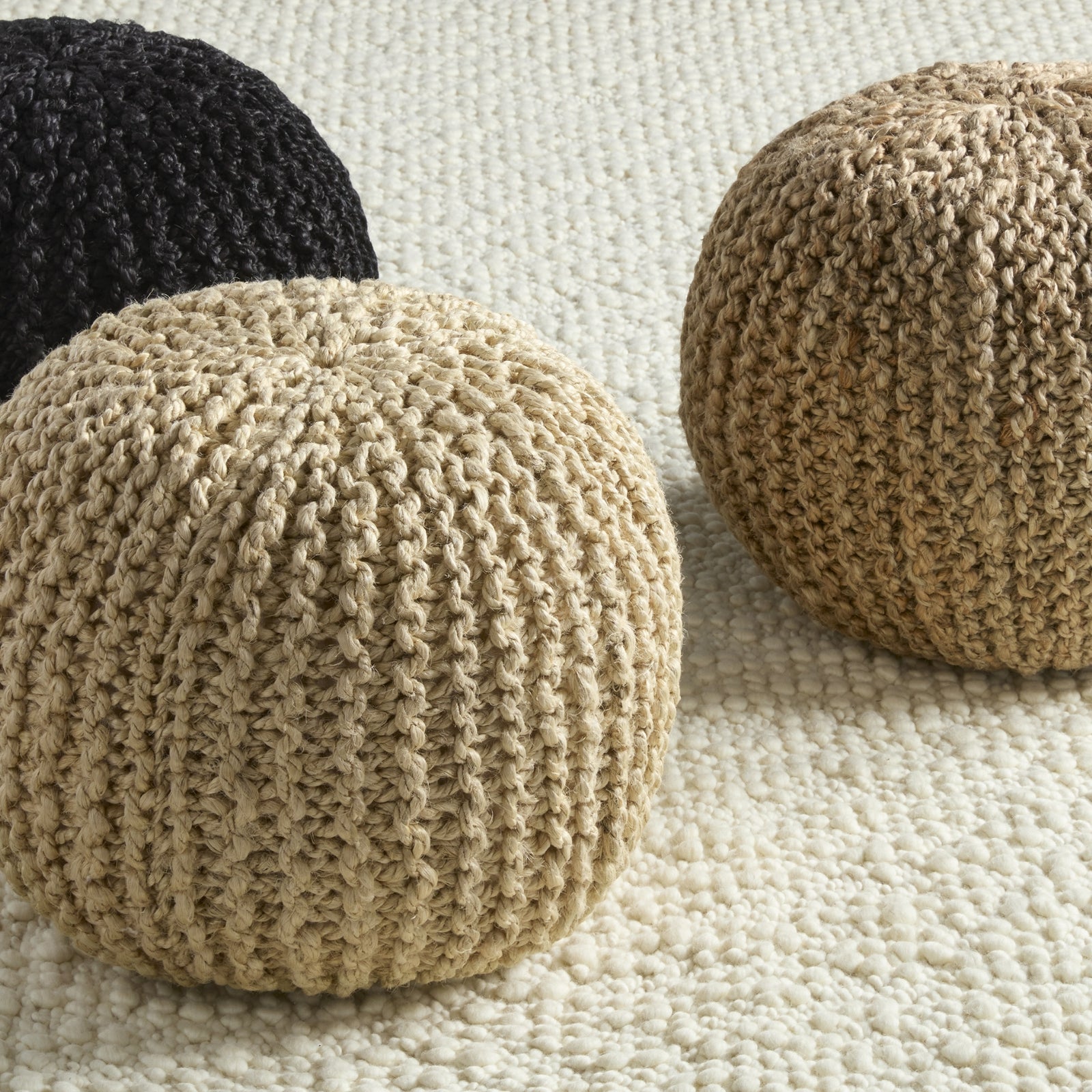Coastal-inspired texture and style define the casual and contemporary appeal of the Canova collection. The Azene ottoman features a chunky knit weave handcrafted in India of 100% natural jute. This versatile, tan pouf can be used as an ottoman or foot stool, additional seating, accent table, or decorative accessory in any indoor space.