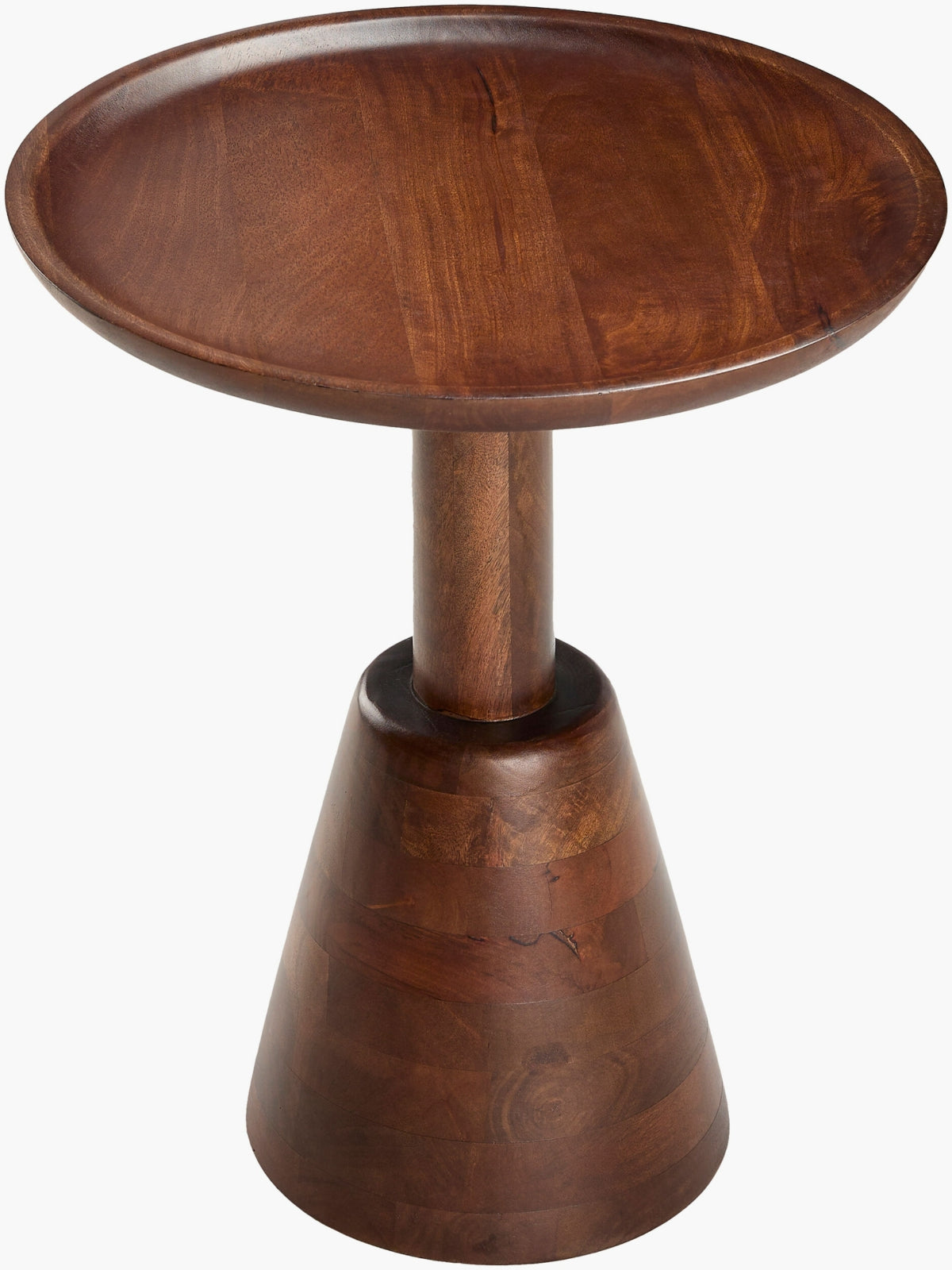 Welcome to the Maeve End Table, a timeless classic that will bring an elegant touch to any room. Crafted with natural mango wood and featuring sleek curves, this piece is perfect for adding a hint of sophistication to your living space. The top of the table has been hand-finished for added texture and depth, while the sturdy base ensures stability. This end table would be great as an accent piece in a bedroom or hallway, or for displaying small items such as books, plants or photos. Its size makes it ideal for smaller spaces too. Wipe clean with a dry cloth and avoid harsh cleaners to keep its beautiful finish intact. Add style and grace to your home with the Maeve End Table!