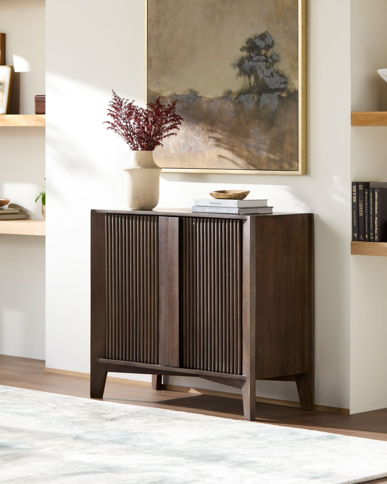 Introducing the Ronan Cabinet, a minimalist modern marvel crafted from exquisite mango wood and made in India. This sleek and stylish piece is perfect for those who appreciate clean lines and contemporary design. The natural beauty of the mango wood shines through, making it a standout addition to any room. Maintenance is a breeze, just wipe clean with a dry cloth to keep it looking pristine. Elevate your living space with the Ronan Cabinet and enjoy the effortless blend of form and function it brings to your home!
