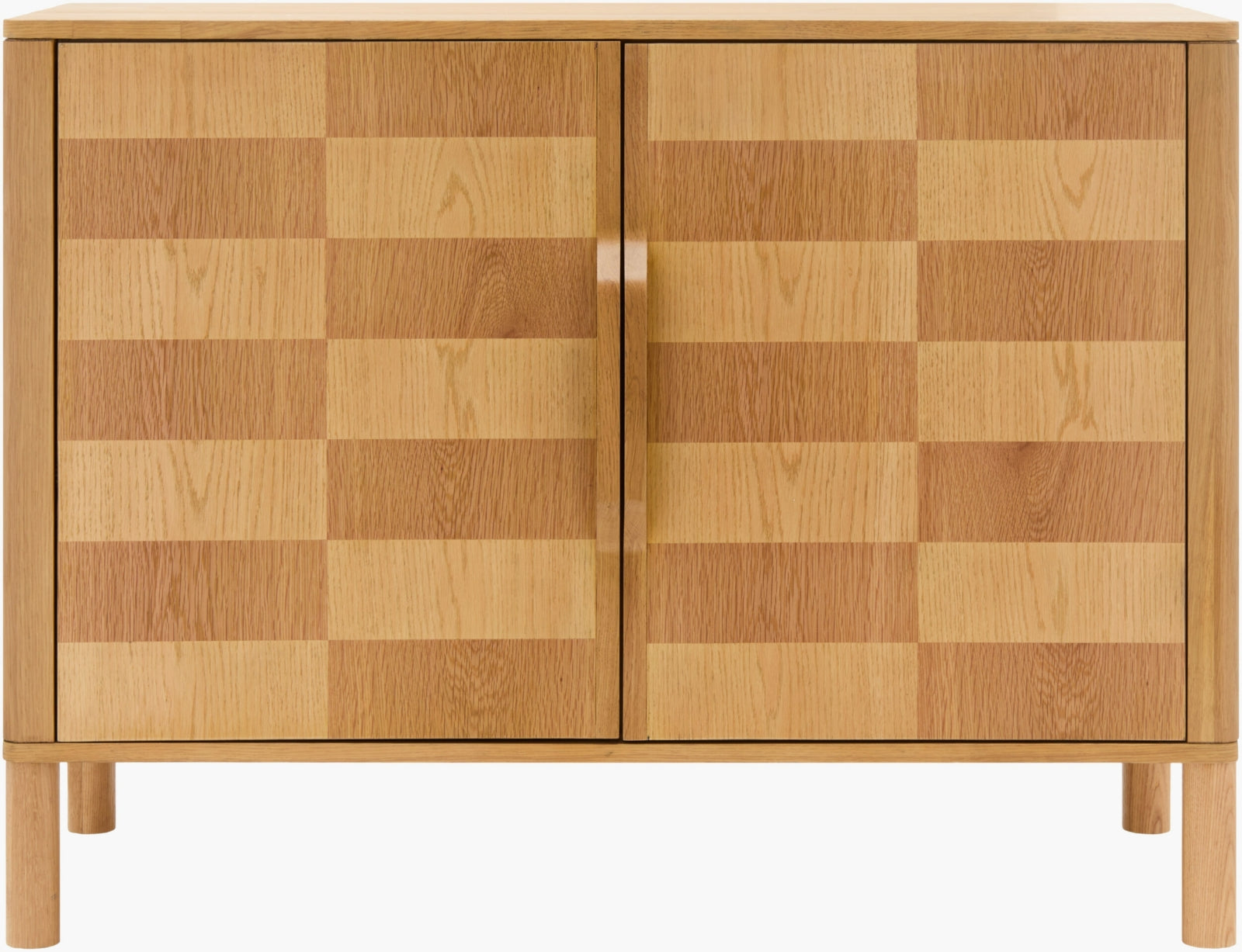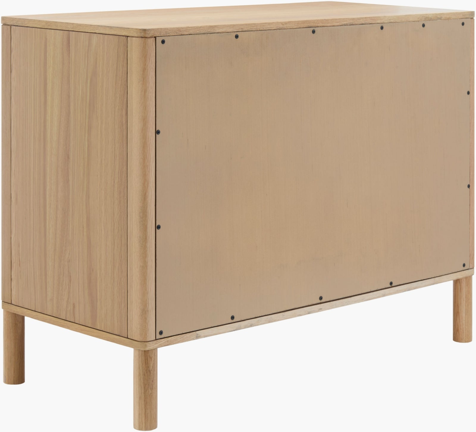 Introducing the Tessell Cabinet, a stunning embodiment of minimalist modern style that is sure to enhance any living space. Manufactured in Vietnam, this chic storage solution features a smooth top made from manufactured wood and white oak veneer, elegantly contrasted by a sturdy base crafted from genuine oak. The Tessell Cabinet provides an effective way to declutter your home while also adding a touch of contemporary elegance. Its care is equally straightforward, simply wipe clean with a dry cloth and avoid harsh cleaners to maintain its stunning finish. Upgrade your home decor today with the Tessell Cabinet, where simplicity meets sophistication!