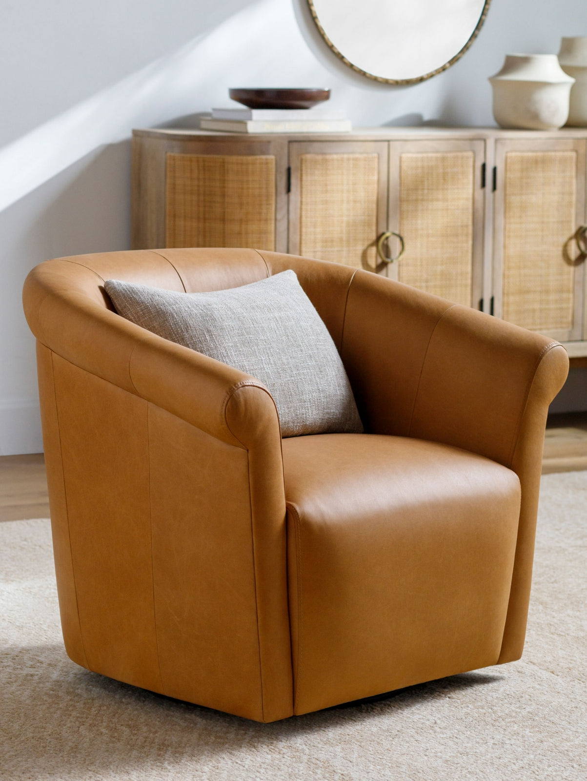 Indulge in the luxurious comfort and sleek sophistication of our Trumpet Swivel Chair. This modern minimalist beauty, manufactured in Vietnam, boasts a rich leather upholstery and a sturdy stainless steel base that not only adds an element of opulence to your space but also ensures durability. Filled with a plush blend of 70% polyurethane foam and 30% mixed feather, it offers an unrivaled seating experience that seamlessly combines style and coziness. Additionally, maintenance is hassle-free - just spot clean it with a dry cloth to keep it looking brand new. With its swivel feature adding an extra layer of convenience, the Trumpet Swivel Chair truly stands as a testament to refined contemporary design.