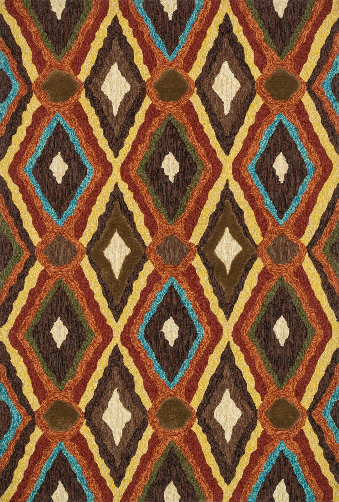 The Enzo Collection takes this high-fashion pattern outdoors. The allover Ikat designs enjoy a rich, bold, bright palette. The hand-hooked polypropylene and polyester rugs feature three dimensions of texture including hooks and cut pile for an overall look that exceeds expectations for an outdoor product.