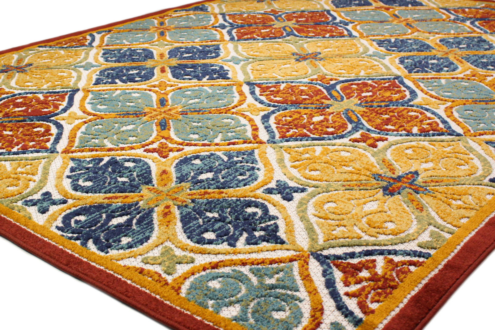 Enjoy the great outdoors in style with these colorful designs in a textured, plush pile. These specially treated polypropylene rugs are UV protected and water-resistant and suitable for indoor or outdoor use.