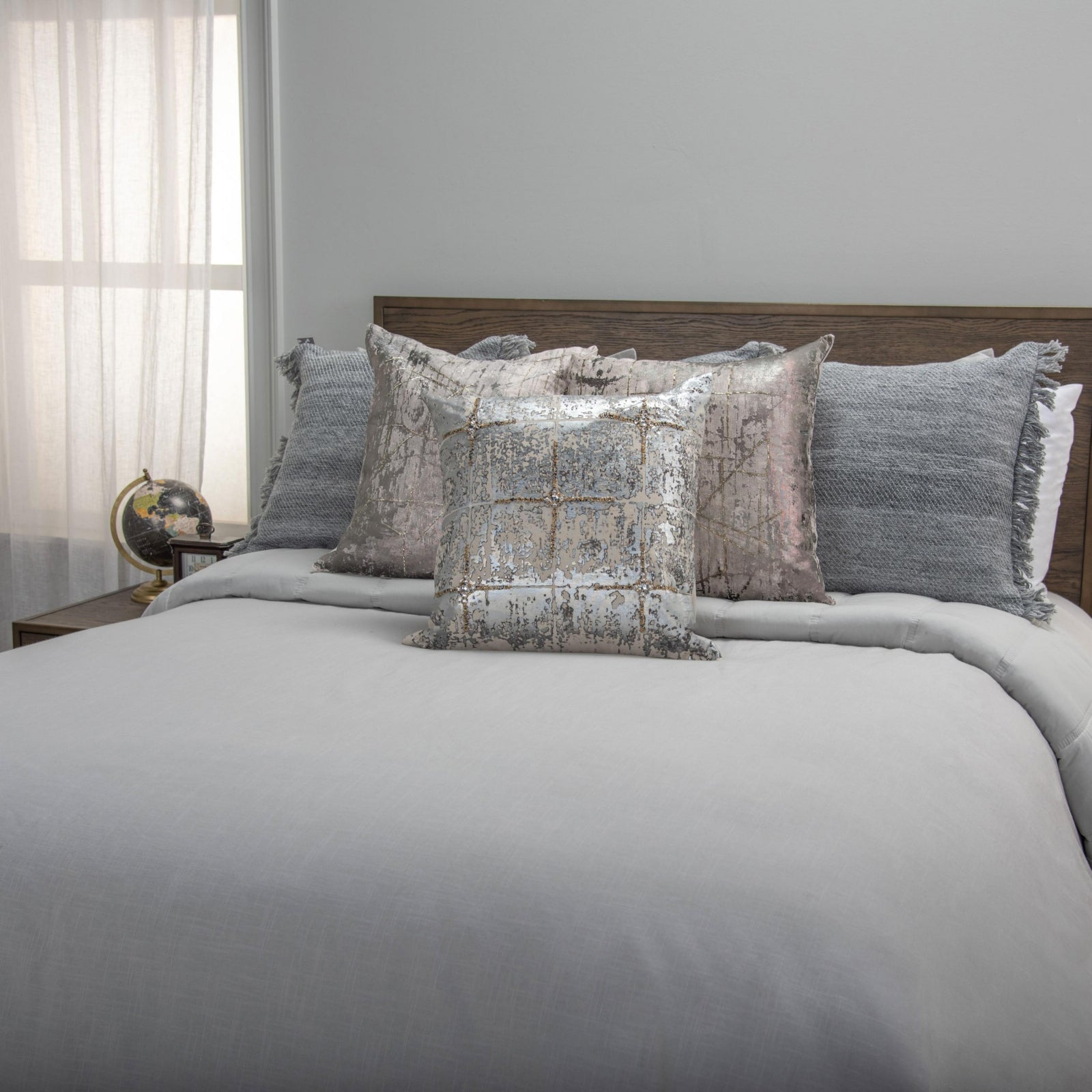 A classic design staple for any home, a comfy comforter can anchor the style in any bedroom retreat for many years to come, serving as a blank canvas to layer and accentuate with other elements from season to season. The best of both worlds, this comforter looks like a filled duvet, but functions like a comforter, with a cotton slub front that gives it that beautiful look of crisp linen. It has an innately stunning contemporary sophistication, that can be coordinated with modern farmhouse or traditional motifs to make the look your own. Expertly crafted in India, this comforter-duvet comes complete with two shams in a soft storm cloud grey hue that invites relaxation and serenity in any bedroom retreat. The bedroom is the heart of our homes, where we snuggle up with loved ones and start and end our days. This multi-seasonal comforter-duvet set with shams will provide a timeless essential for your home bedding collection that will hold family memories all year round. Elegance made simple, from Rizzy Home's premium bedding collection: Blackberry Grove.