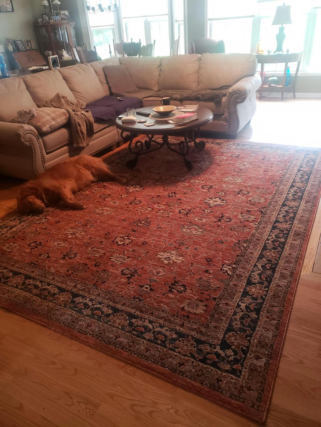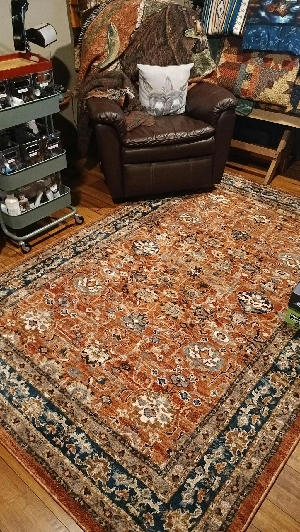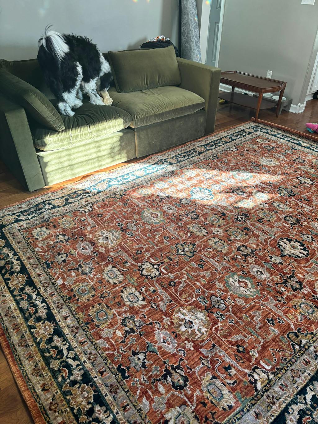 I've had my eye on this area rug for some time now. Finally I hit the Buy button, and I'm not sorry. It is as beautiful as I was hoping it would be in person, and fits my space exactly as I wanted. The plushness of the carpet combined with a nice pad, make it very soft under foot.