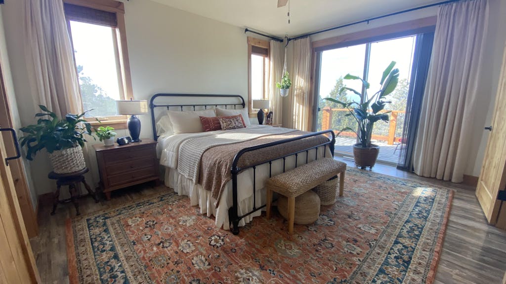 This rug was previously in my living room but we purchased the Karastan Myanmar Tobacco rug and now this beauty resides in our master! It grounds this room so beautifully! Just waiting for our artwork to arrive!!!!