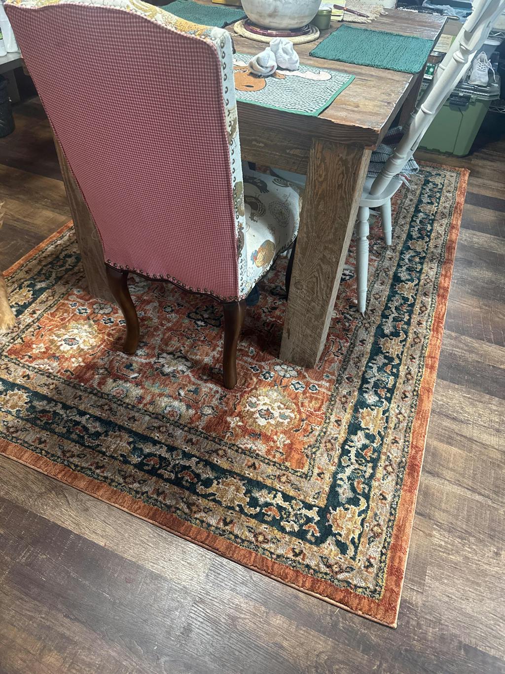 We loved the Keralam Spice market rug we purchased for the rear parlor in our 130 year old Queen Ann Victorian home that we're restoring!