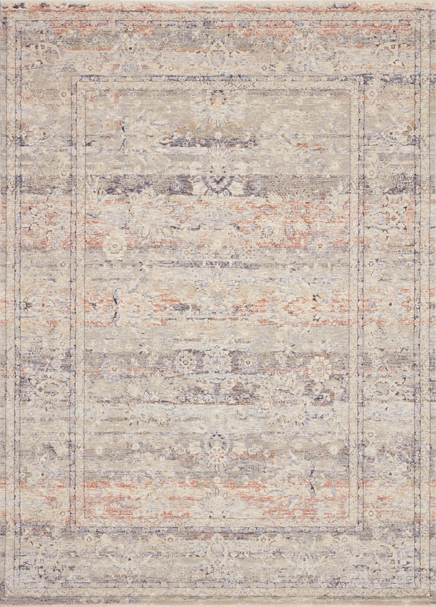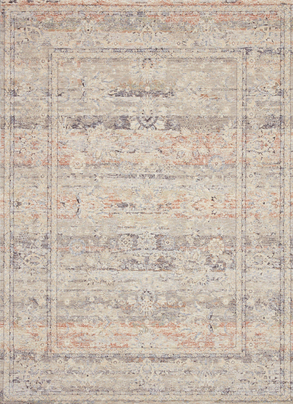 Power-loomed of polyester and viscose in Turkey, the Faye Collection displays a soft color palette and a mix of distressed and traditional-inspired motifs.