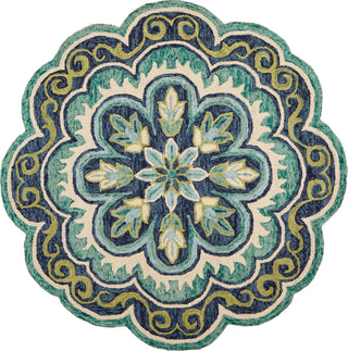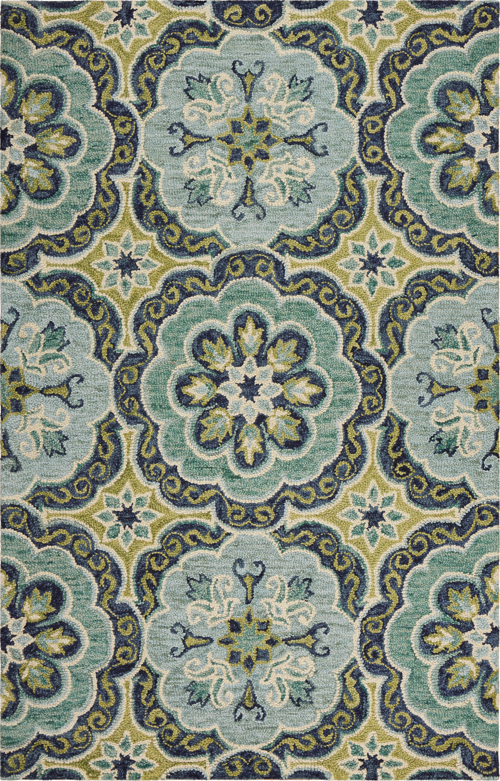 Add a pop of color and texture to any decor with this gentile Dazzle indoor area rug. Manufactured of 100% virgin wool, this floral design features bold teal, blue, green, and cream with kaleidoscopic effect. This piece was hand tufted in India using a unique loop pile design, and is naturally durable and soft.