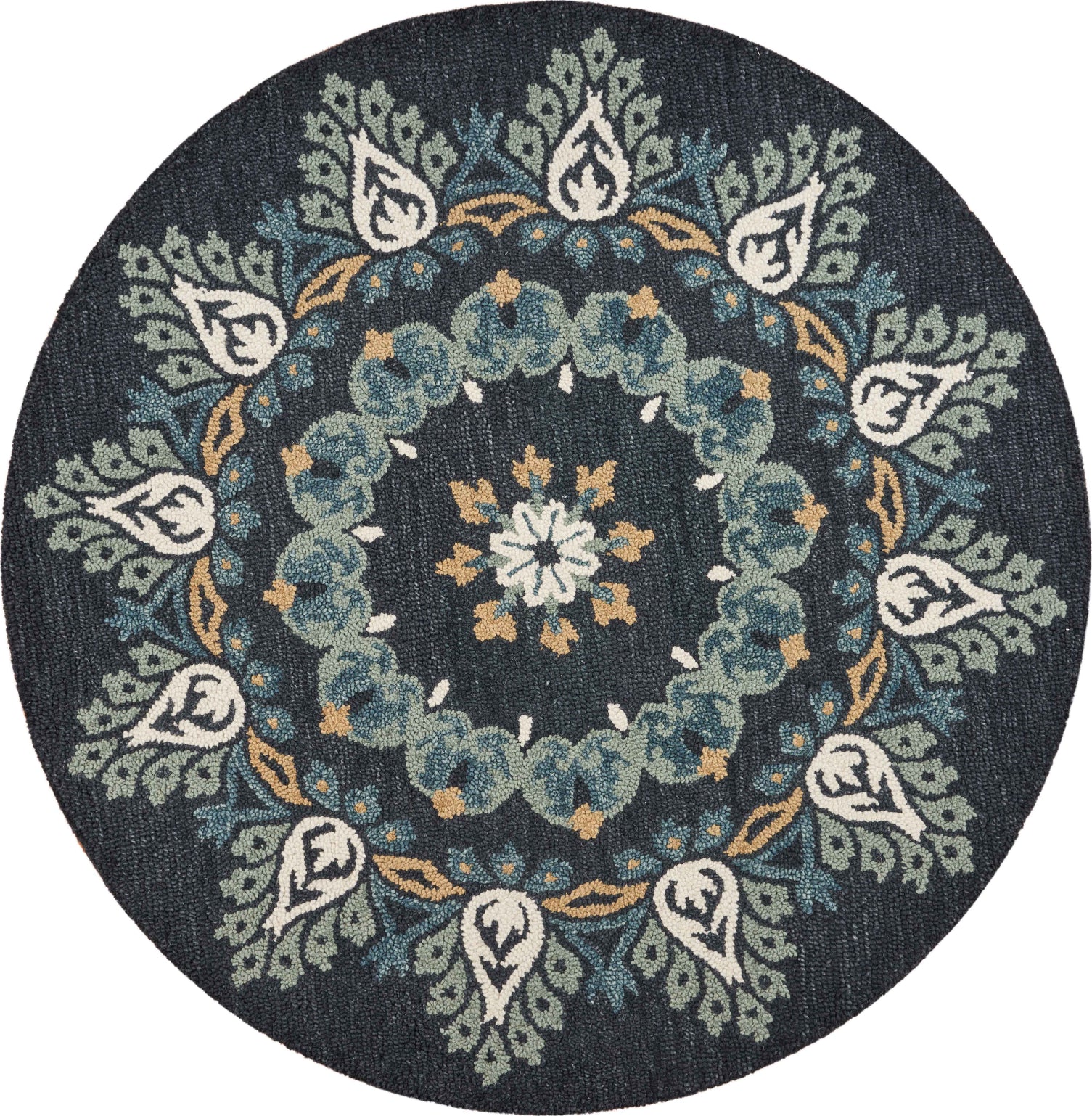 Deep hues can sometimes overwhelm a space, however, this piece is the exception to the rule with its delicate pattern to lighten the rug and provide detailed design. The color combination is an easy match for a variety of spaces. Easily placed in your living area, foyer, bedroom, or even in an office this piece is sure to thrill. Hand tufted in India, this piece has been made with intricate craftsmanship from hardworking hands to your home.