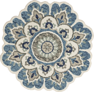 The tranquil colors to this rug are sure to add great style and joy to your home. The scalloped/petaled edge on this piece is sure to add a fun flare to the room. The bordered edge also adds a nice transition from rug to hardwood or carpet. There are endless possibilities of where this piece can be placed in your home or even in an office. Hand tufted in India, this piece has been made with intricate craftsmanship from hardworking hands to your home.