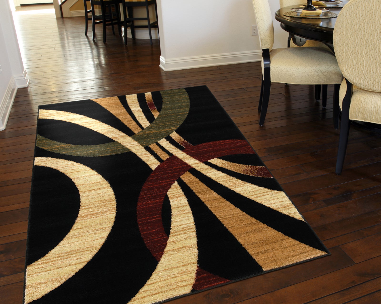 This area rug encompasses the meaning of modern elegance. Clean lines and bold contrast catch the eye and fixate it on the incredible beauty of this piece. The sparkling gold, rich red, and vibrant green ring together to create almost a fine jewelry effect. Just like a precious family heirloom, the color and quality of this rug will last through the ages with the help of its fade and stain resistant qualities.