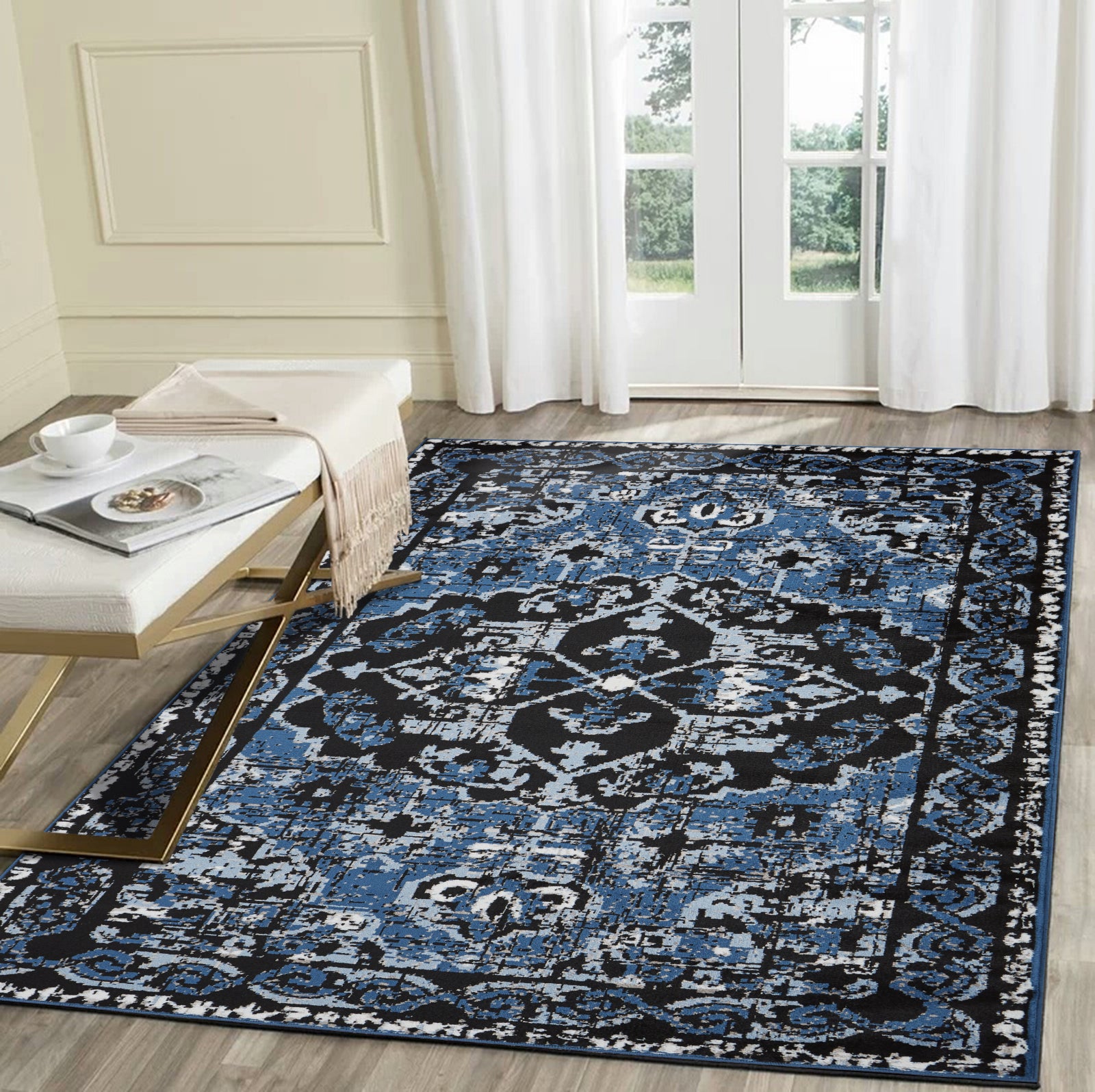 LR Home Infinity 81316 Black/Sky Blue Area Rug