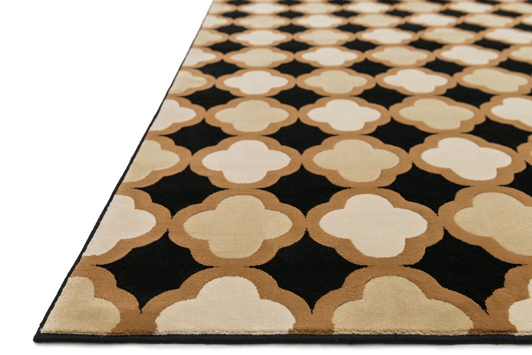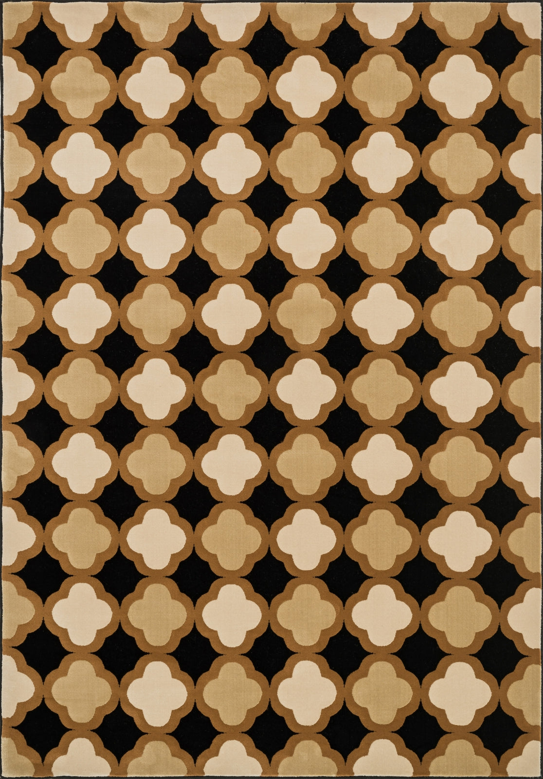 Power-loomed in Turkey of durable polypropylene, Shelton's vivid, graphic designs spotlight dramatic zigzag chevrons, elegant ironwork and Moroccan tile motifs in a palette that is pleasing for both him and her. Zen-like, earthy hues of rich black, brick, brown, ivory, misty blue and camel set a surprisingly soothing tone that can help add style to your home and order to your day.