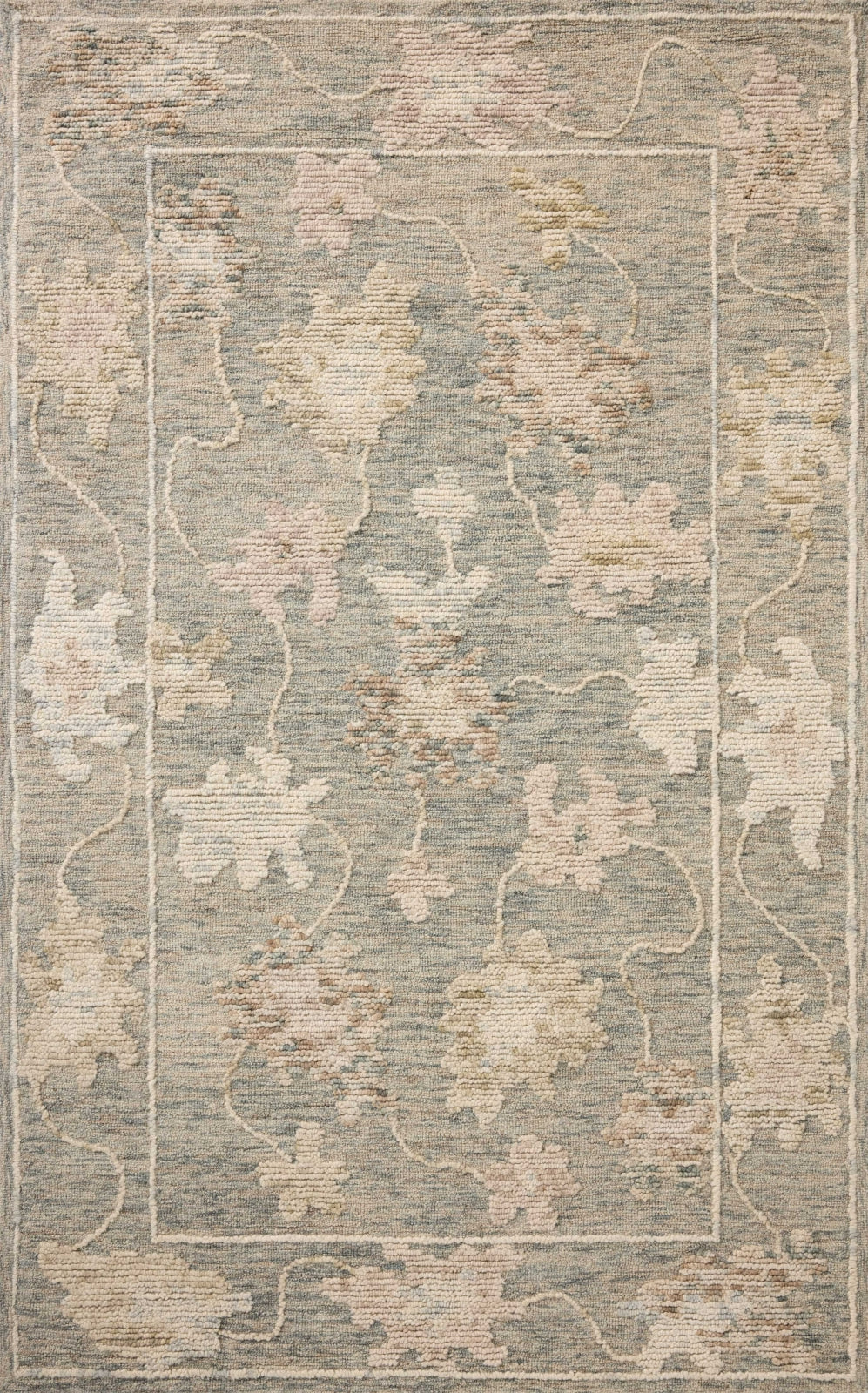 The Cynthia Collection is a beautiful floral area rug with a high/low looped pile that gives the oversized design even more dimension. A neutral-toned rug for many home decor styles, Cynthia is perfect for living rooms, dining rooms, bedrooms, and more. This collection is hand-tufted of wool in India and Goodweave-certified, ensuring our commitment to ethical production and the support of weavers' communities. Some shedding is expected and a natural characteristic of wool rugs- we recommend vacuuming frequently without a beater bar.