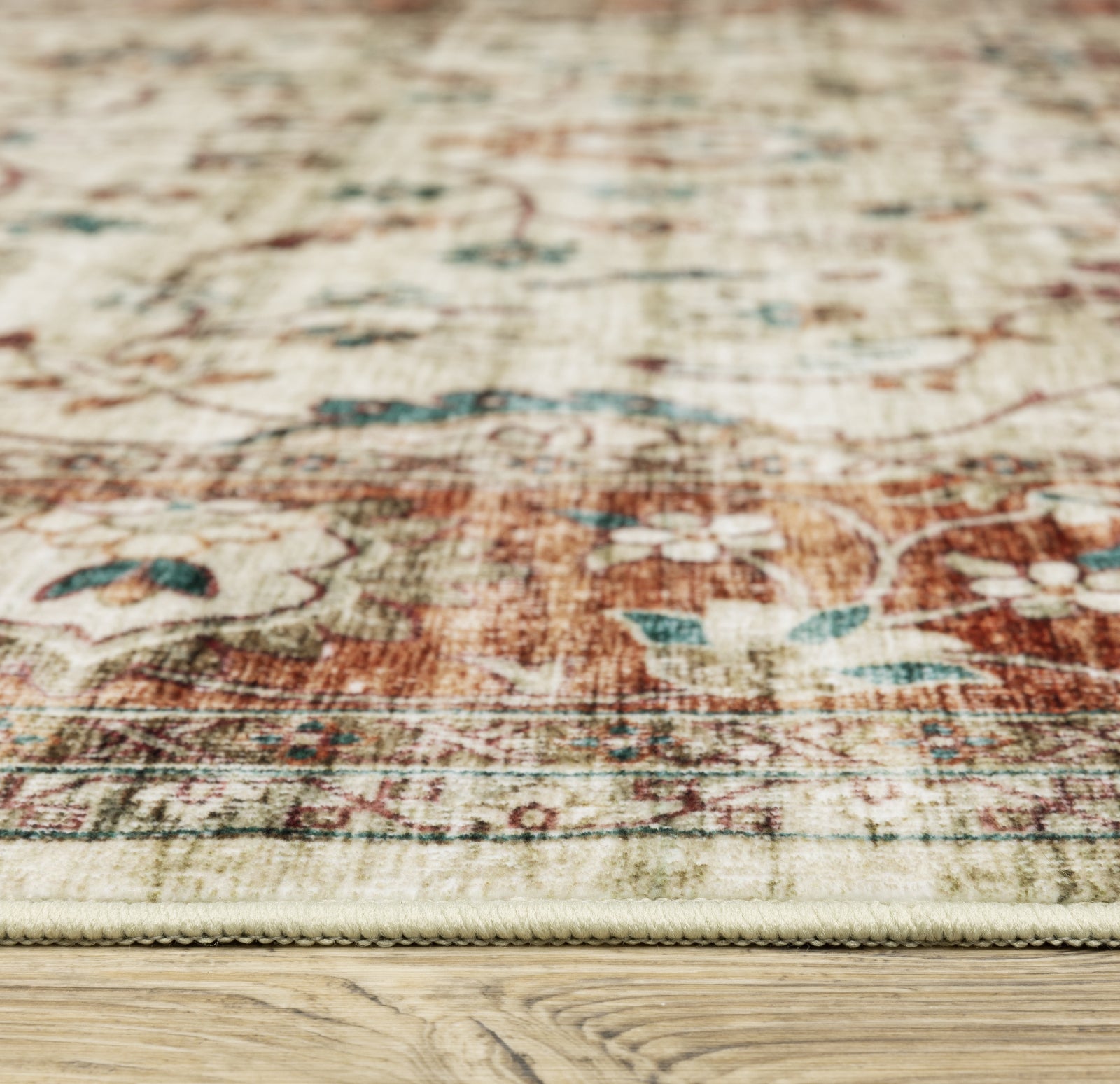 Machine made of 100% polyester, the Sumter collection features an innovative, machine washable printed base with non-slip backing. Its easy-care nature makes it perfect for high-traffic areas and family friendly living spaces. With its soft low-pile construction and intricate blanket stitch finish, Sumter showcases distressed traditional designs that will accentuate any room in your home.