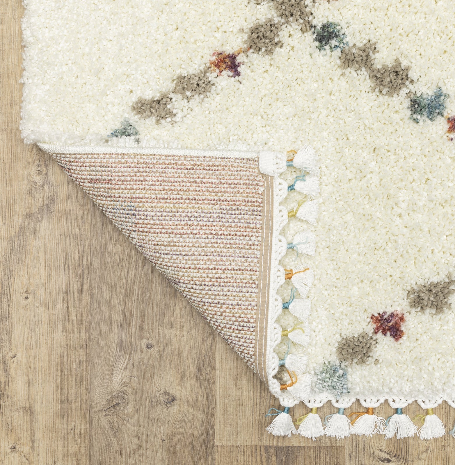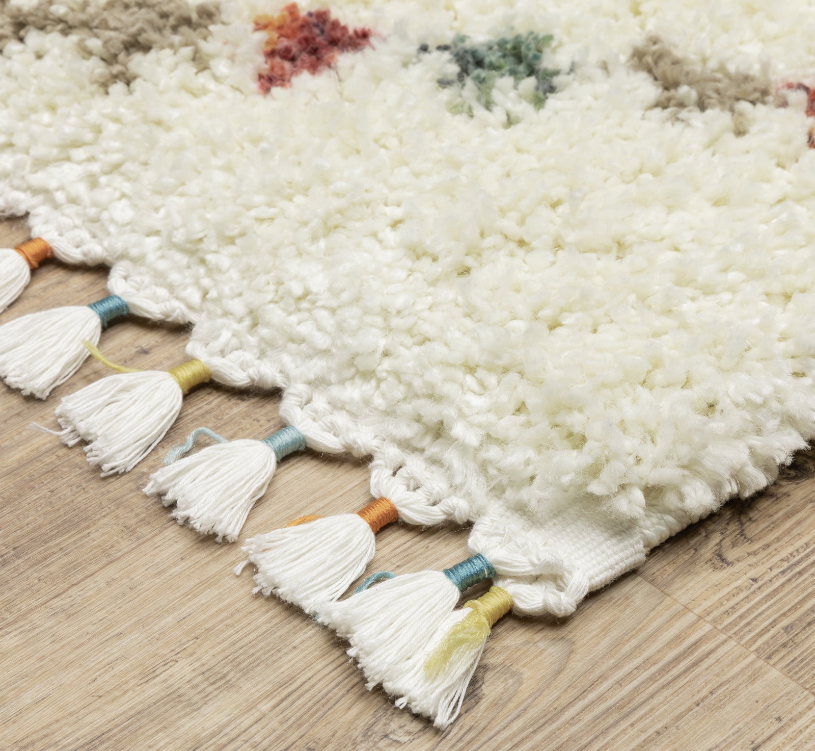 The Axis collection showcases multi-colored space dyed yarns and on-trend tassel fringe. It is power-loomed of soft polypropylene. The dense, high-pile construction offers a super soft textured hand and features modern global stylings in fresh, fun colors.