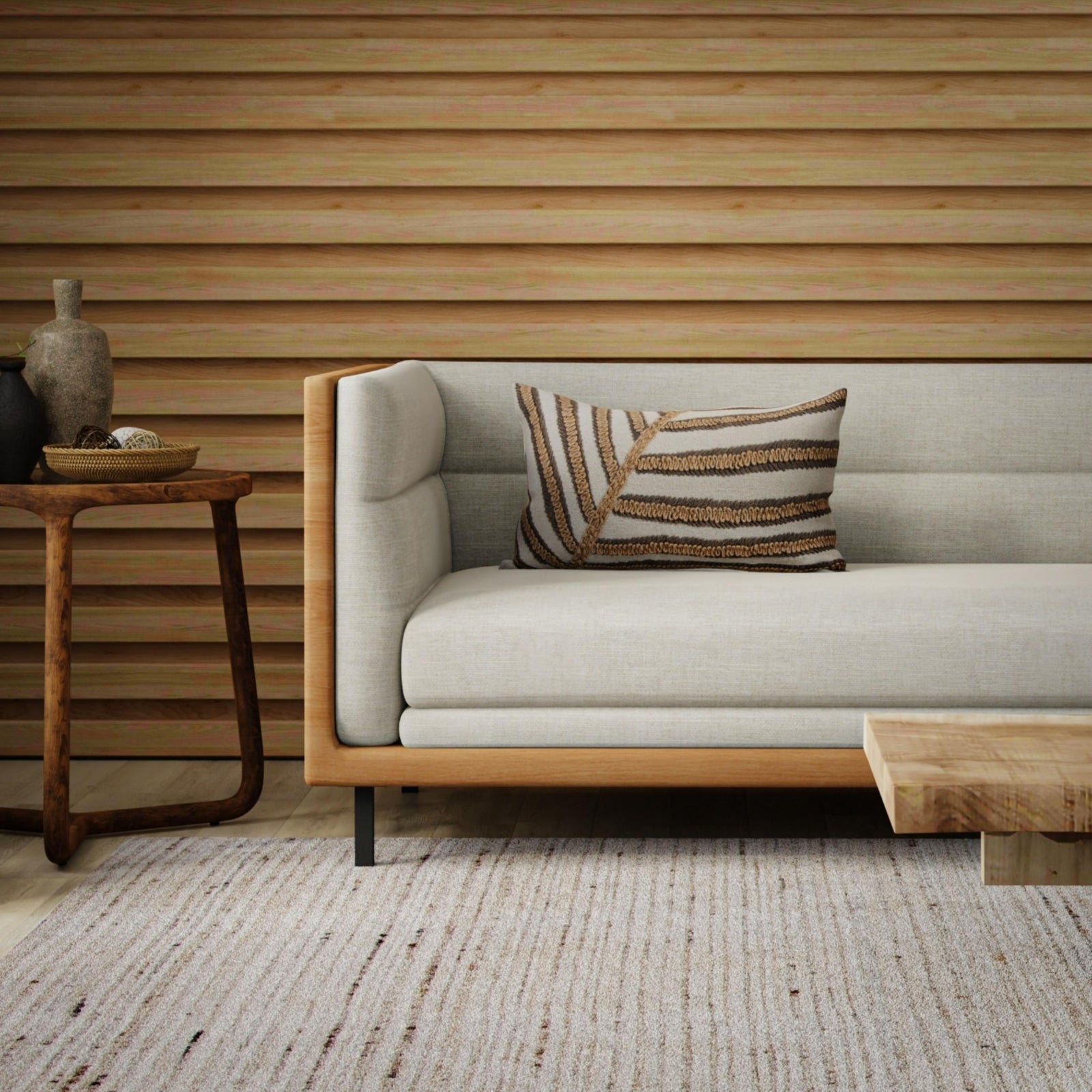Organic appeal and modern boho charm come together in this 14x26 down-filled throw pillow from Rizzy Home, thoughtfully crafted with Mother Earth in mind. Made from recycled cotton canvas in a natural beige tone, it pairs beautifully with stacked embroidery of woven macrame knotted lace in two rich shades of brown. The intricate stitching forms a diagonal leaf design, adding depth and dimension with an elevated texture. A crisp knife-edged fi nish and solid coordinating back with a hidden zipper closure ensure an effortlessly chic, tailored look-perfect for any home decor.
