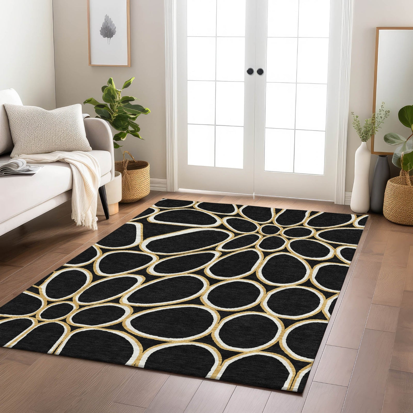 Piper Looms Chantille Circles ACN1041 Black Machine Washable Area Rug