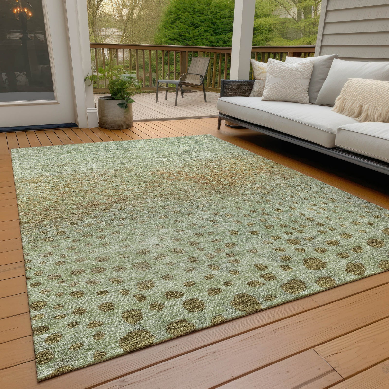 Create a lively atmosphere in your home with our area rug, featuring random small shaped circles in an overall pattern that suits both transitional and contemporary interiors. This unique design adds a dynamic flair to any setting. UV stabilized for enduring beauty indoors or outdoors, the rug's ultra-thin construction ensures it fits smoothly in any area without being obtrusive. Its machine-washable nature offers ultimate convenience, making it an ideal choice for households with pets and children, where easy upkeep is essential.