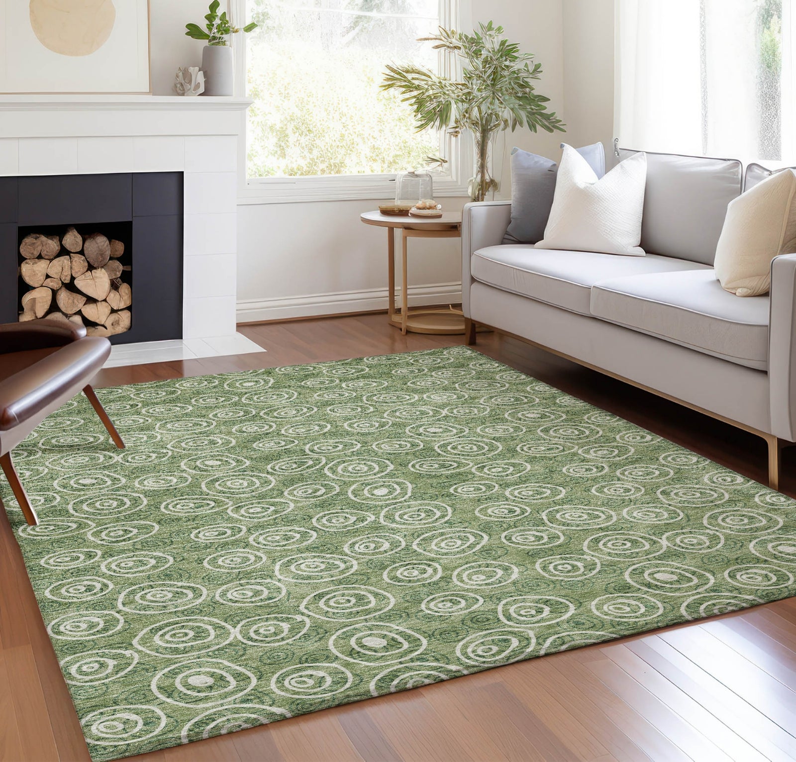 Piper Looms Chantille Circles ACN728 Green Machine Washable Area Rug