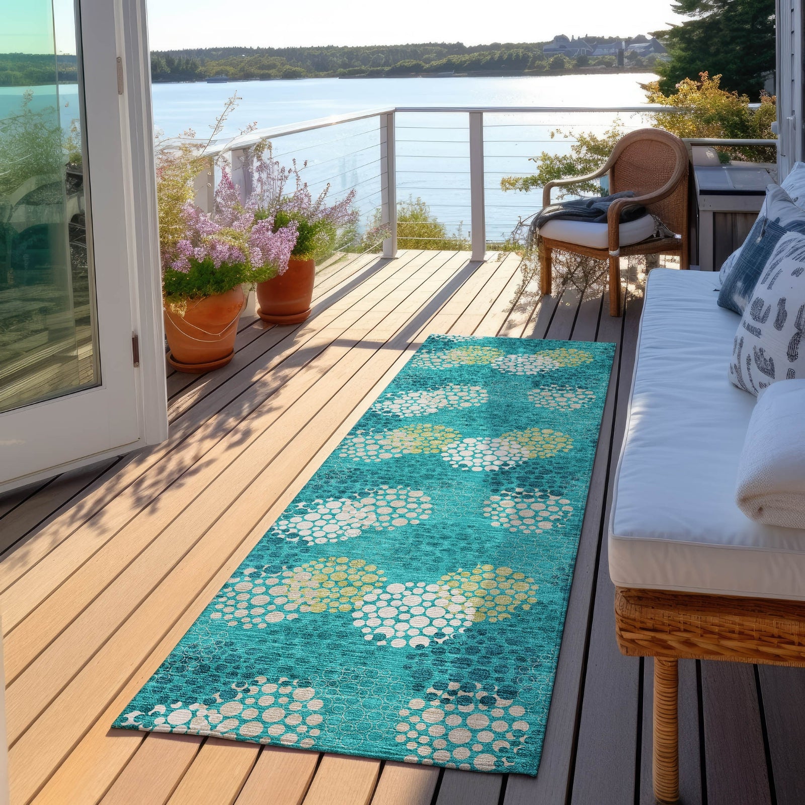 • UV Stabilized For Indoor or Outdoor Use. All rugs exposed to long periods of intense and direct sunlight can experience loss of color over time. Our rugs perform best in covered outdoor areas and uncovered areas with lower hours of direct sunlight.