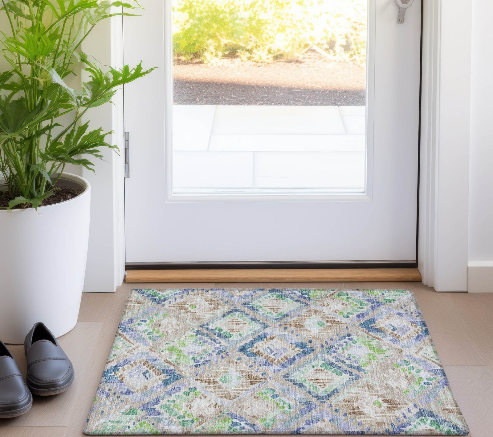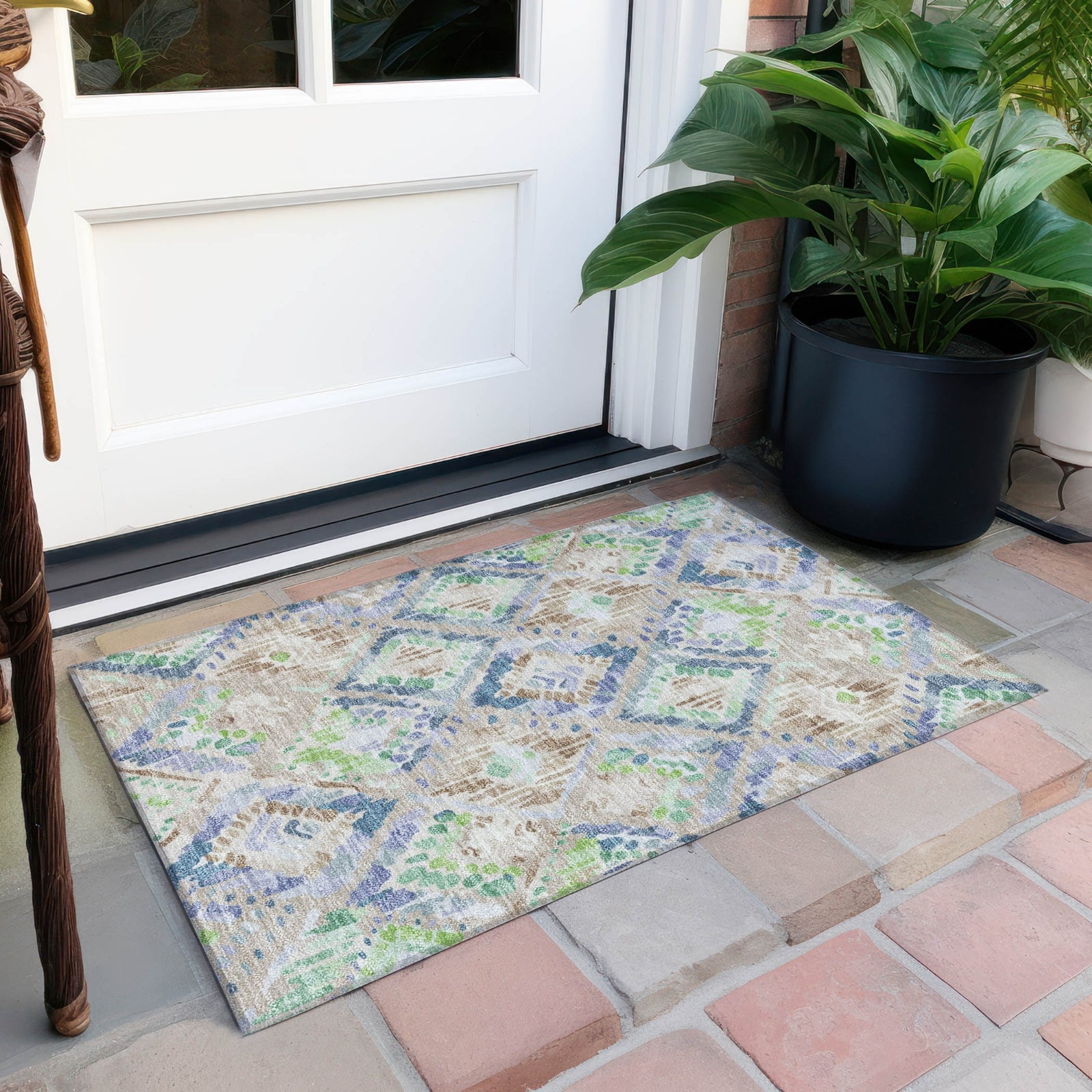 The large diamond lattice pattern creates a sophisticated geometric design that enhances transitional interiors with elegance. The bold look adds depth and modern appeal, making it a versatile choice for various decors. UV-stabilized fibers ensure it is ideal for both indoor and outdoor use. The ultra-thin build allows for easy placement and maintenance, and it is machine-washable for simple care. Perfect for families and pet-friendly environments, this rug seamlessly combines elegance with functionality.