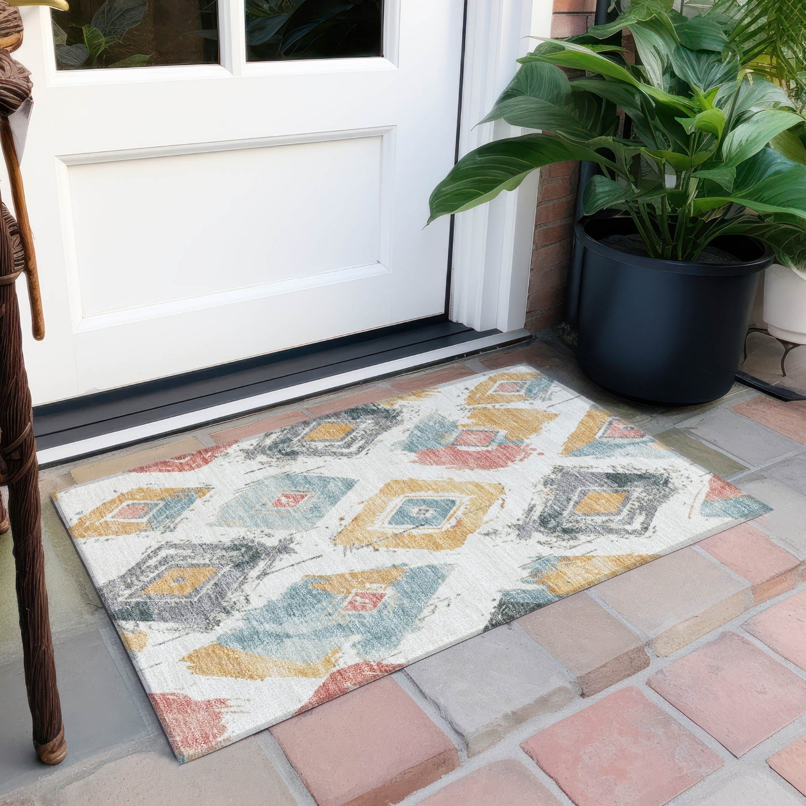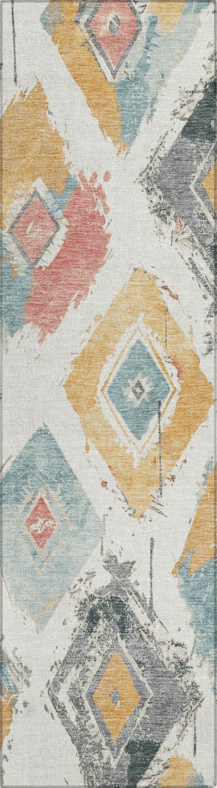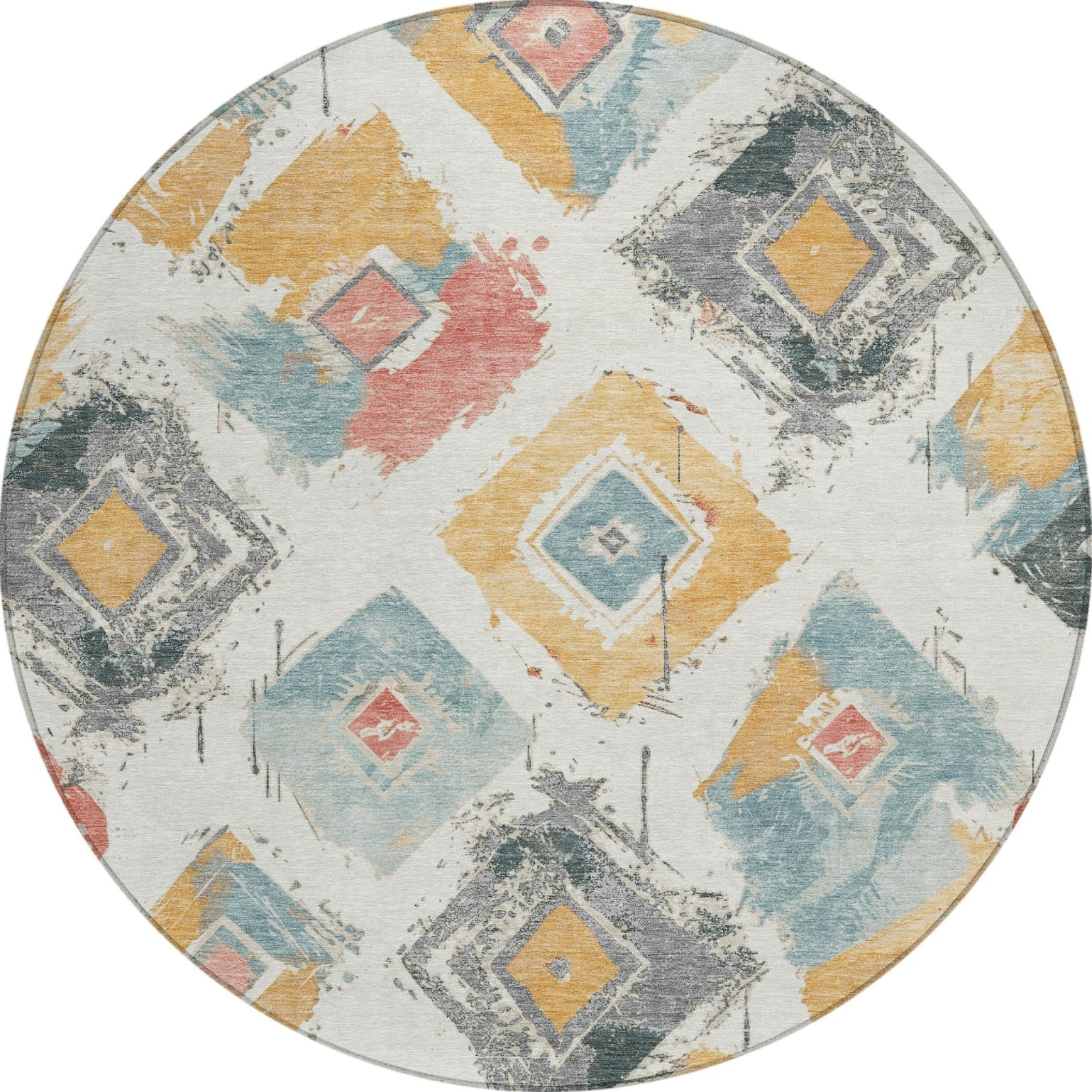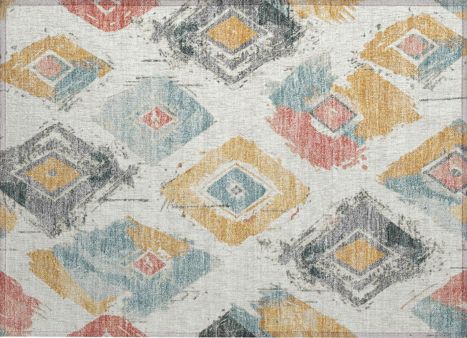 Distressed diamonds on an open field define the modern elegance of this transitional rug. The pattern adds a sophisticated yet contemporary touch to your decor. UV stabilized for long-lasting use, this rug is perfect for both indoor and outdoor settings, retaining its stylish appearance through regular use. Its ultra-thin profile ensures it fits effortlessly under furniture, and it's machine-washable for convenient care. Family and pet-friendly, this rug merges distinctive design with practical functionality.