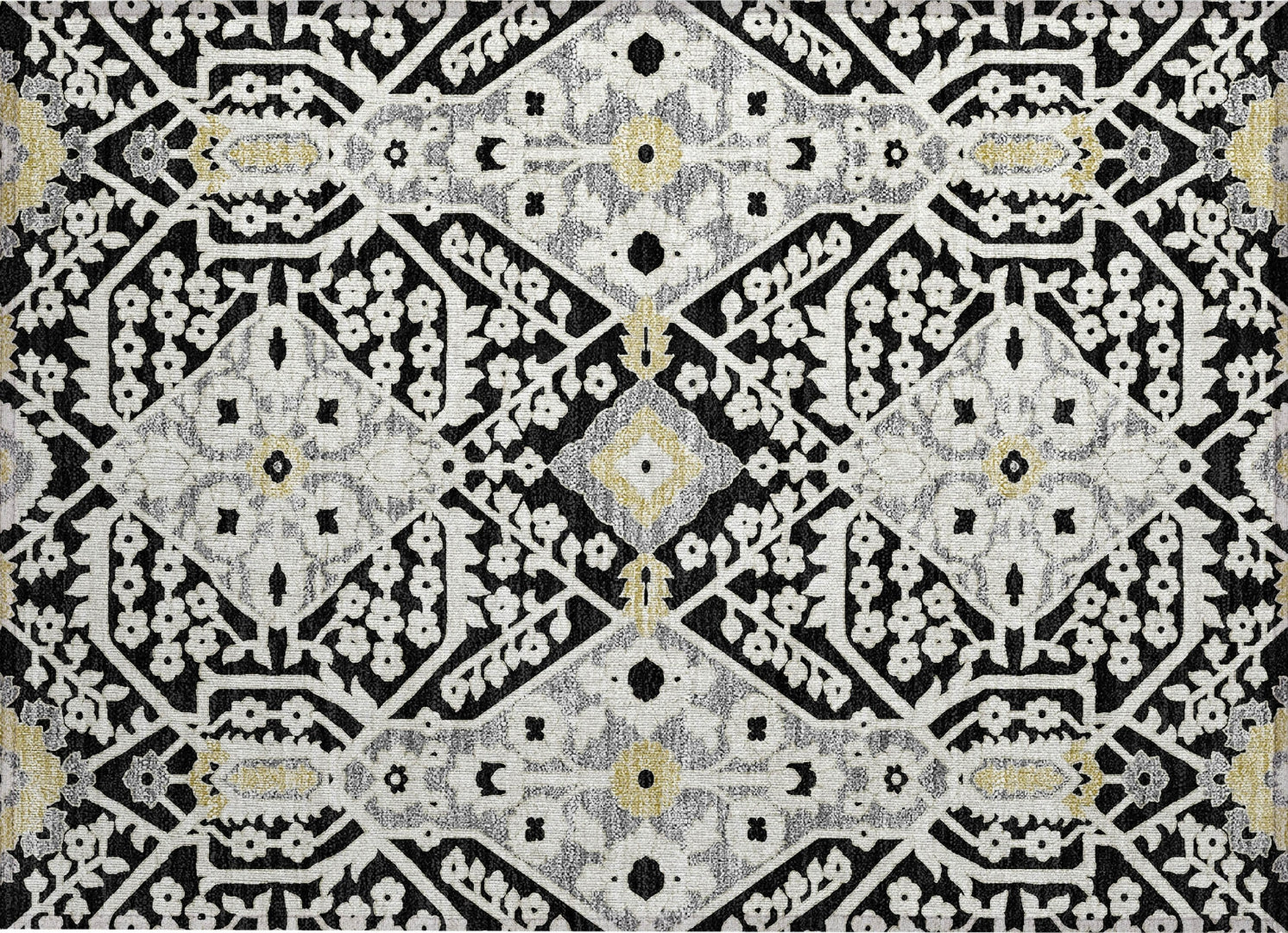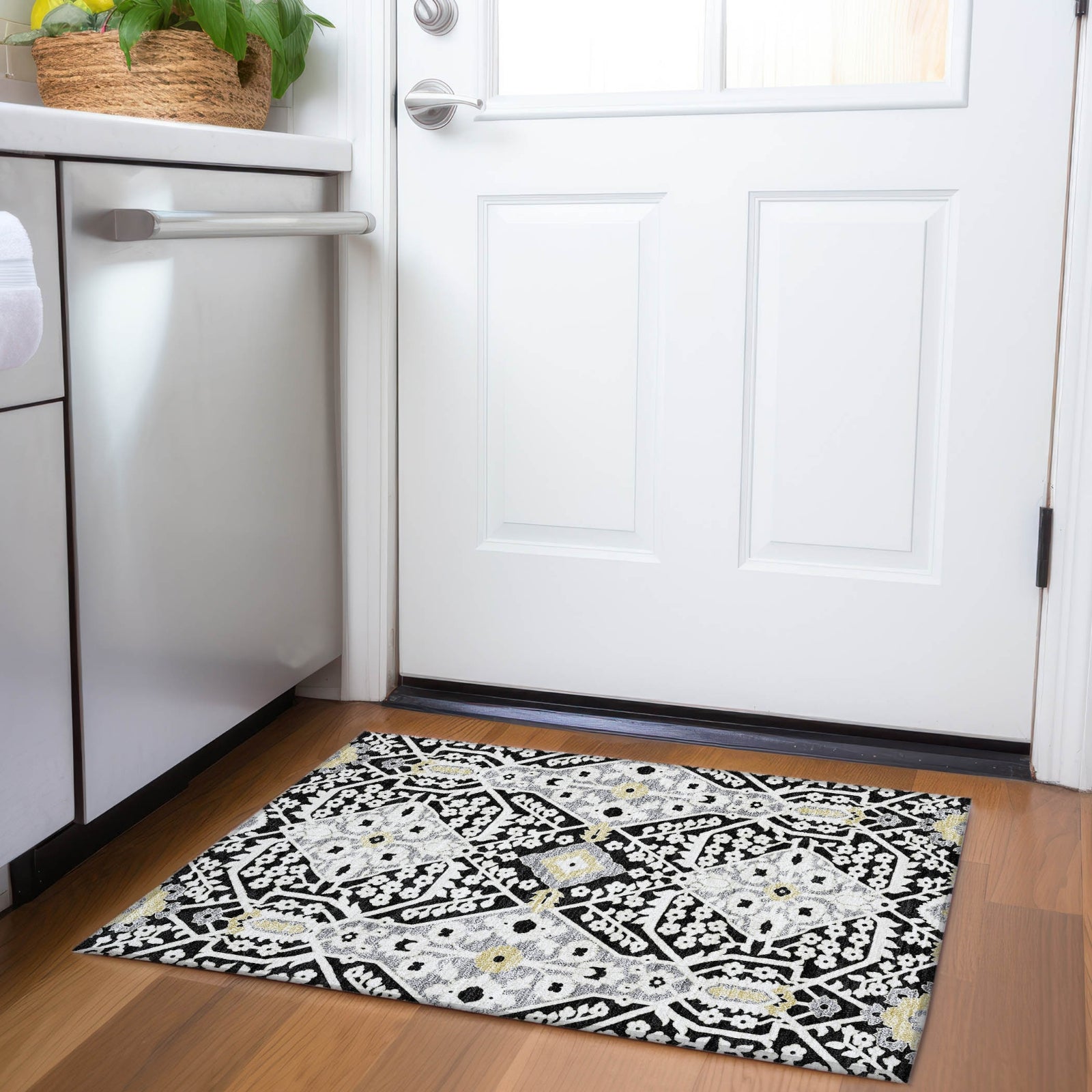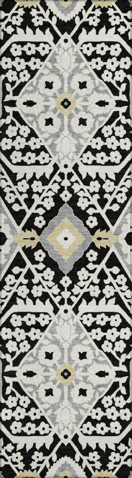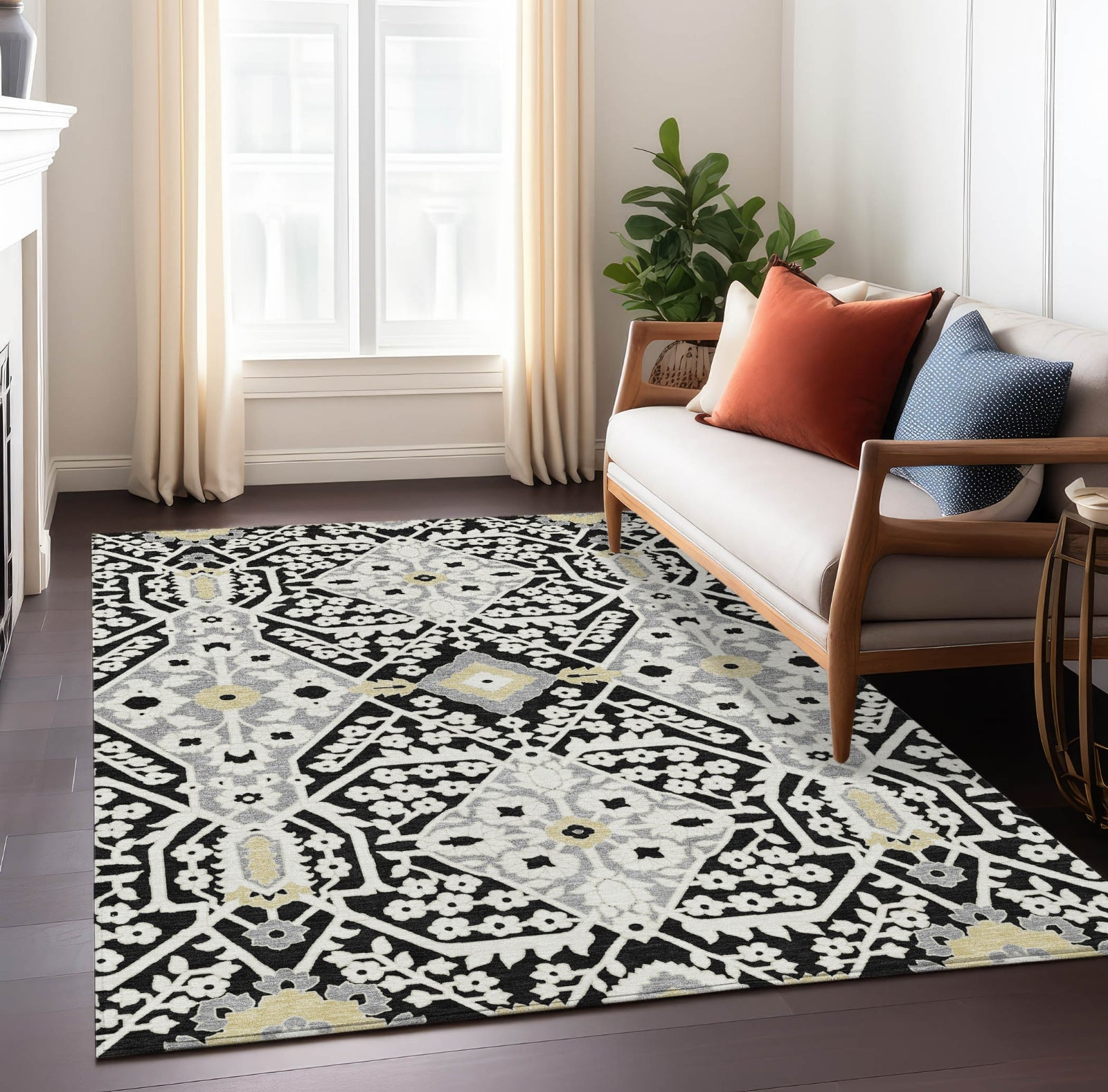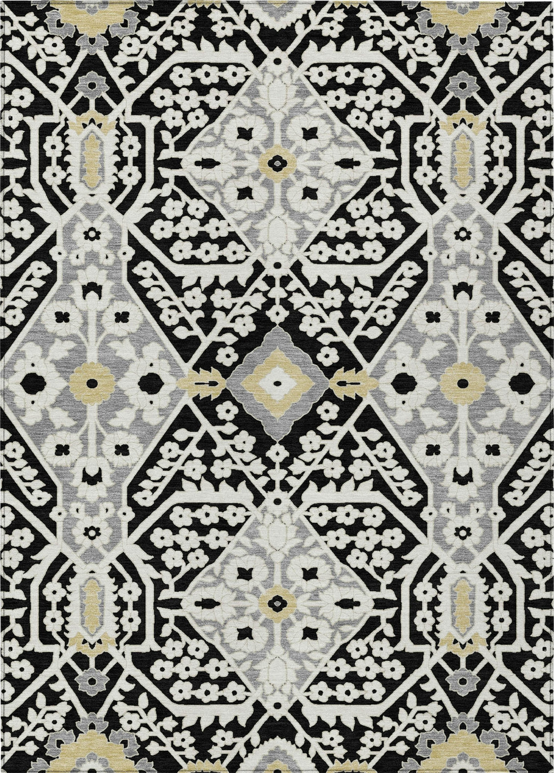 Redefine your interior with this area rug, which offers a contemporary update on the Agra pattern, accented with oversized diamonds for a sleek, transitional aesthetic. The diamond design adds a touch of modern sophistication to your decor. This rug is also exceptionally practical, featuring UV stabilization for indoor or outdoor use, an ultra-thin build for flexible placement, machine-washable fabric for easy maintenance, and a family and pet-friendly design, perfect for everyday living.