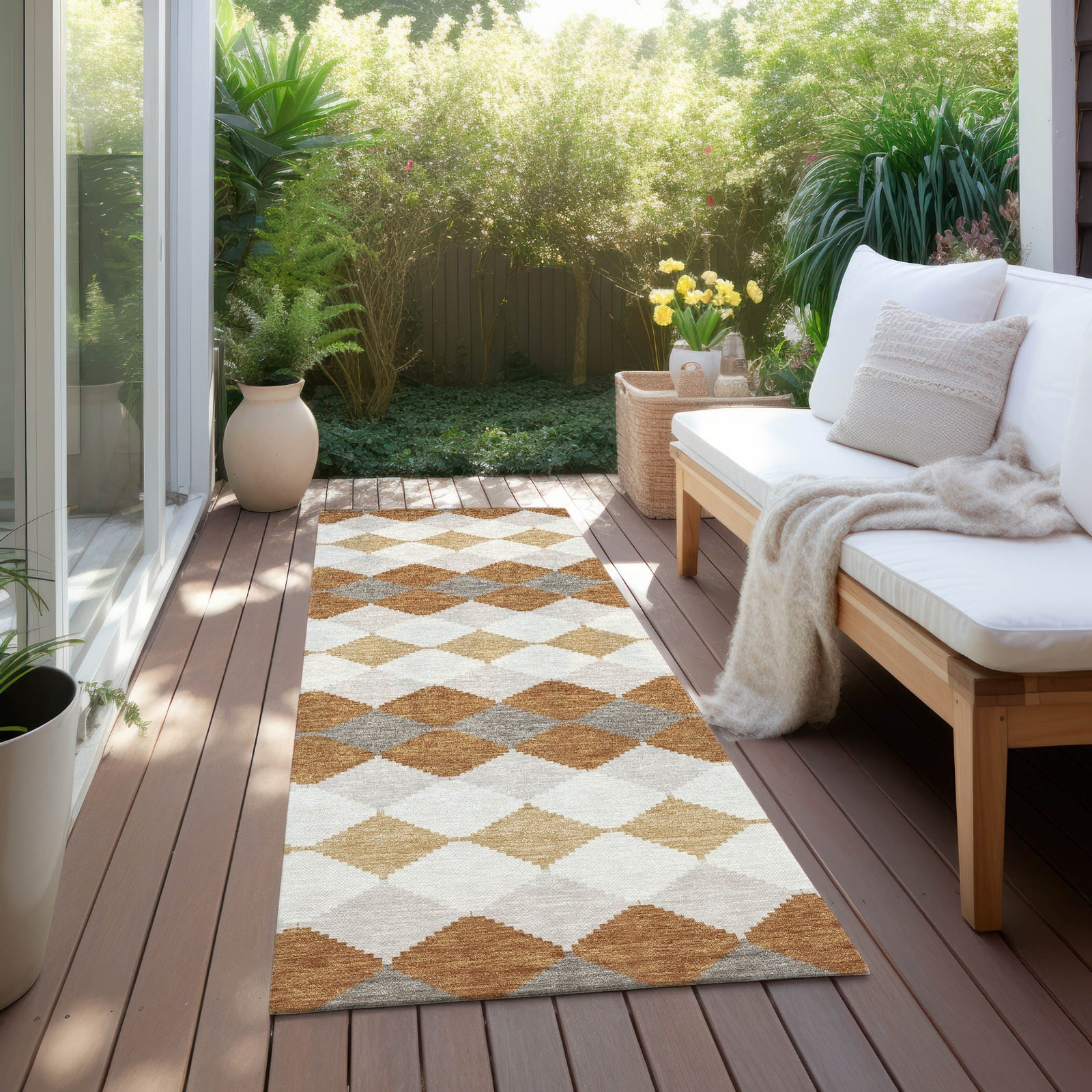 • UV Stabilized For Indoor or Outdoor Use. All rugs exposed to long periods of intense and direct sunlight can experience loss of color over time. Our rugs perform best in covered outdoor areas and uncovered areas with lower hours of direct sunlight.
