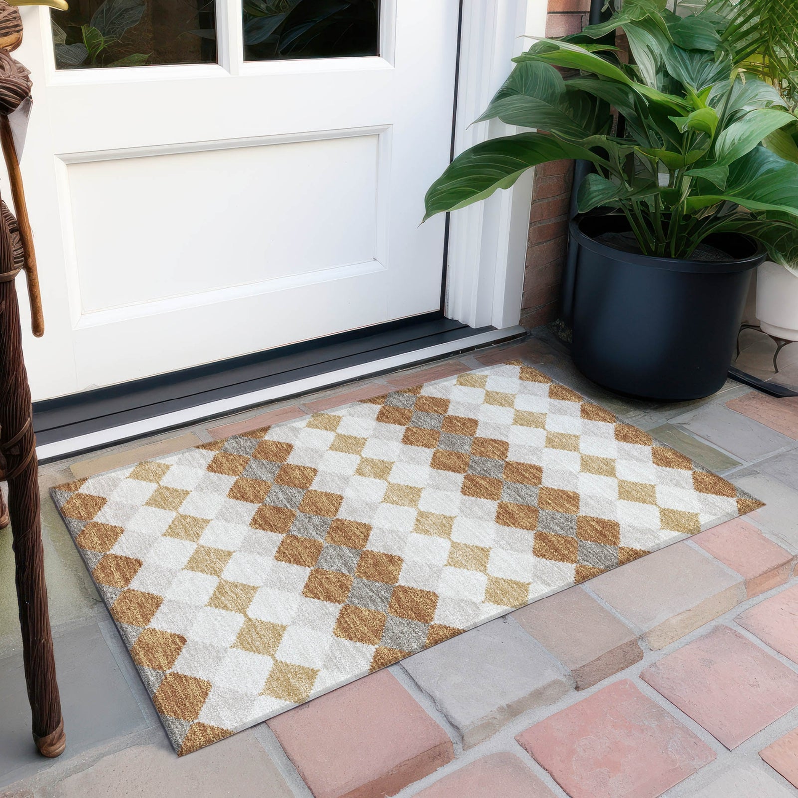 Bring geometric sophistication to your floors with our area rug, where diamond-shaped motifs come together to create an alluring striped pattern. This transitional rug is designed to complement both modern and traditional interiors. With UV stabilization, ultra-thin construction, and machine-washability, its crafted to meet the needs of any dynamic household, including those with pets and children.