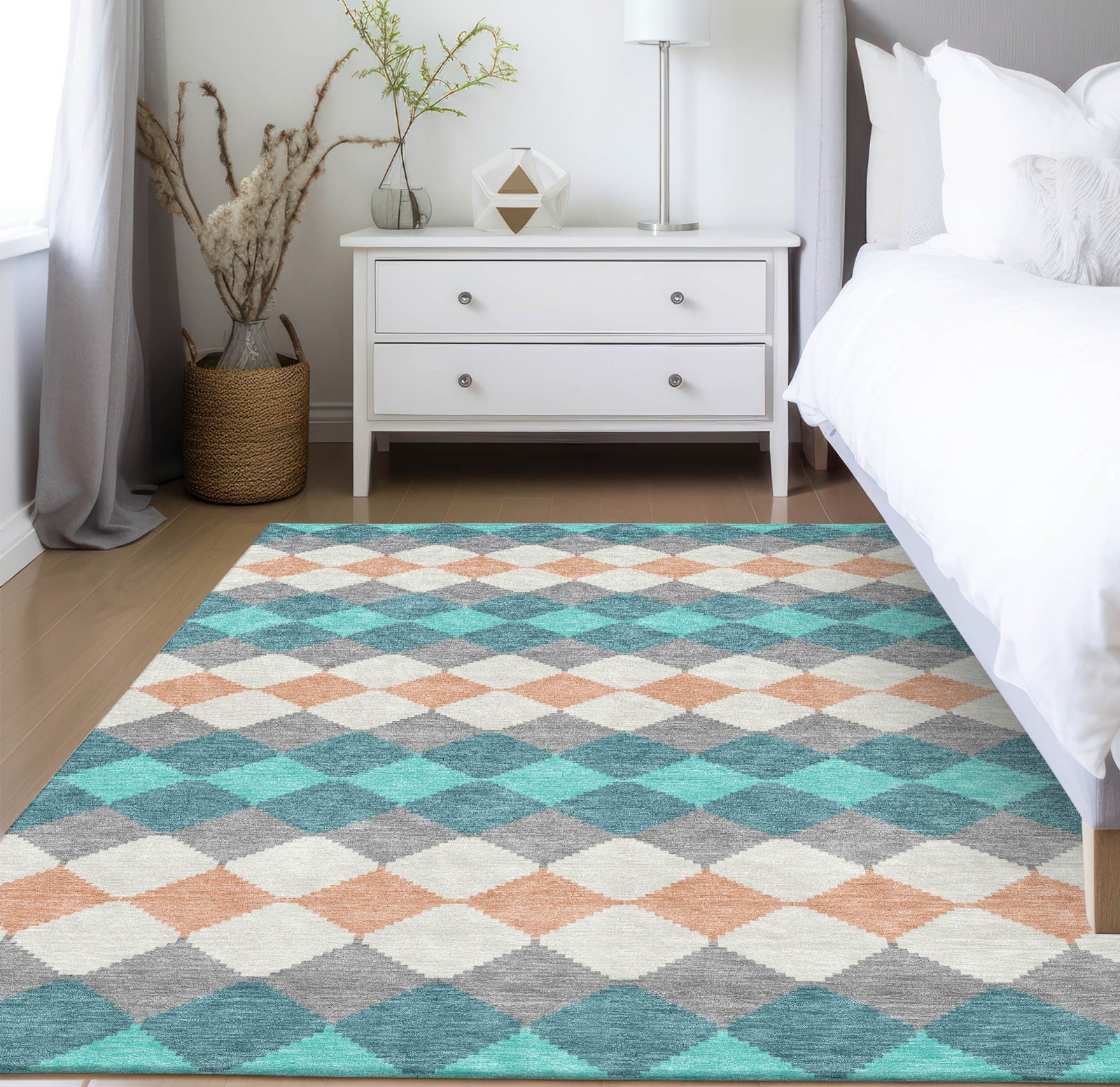Piper Looms Chantille Geometric ACN1007 Teal Machine Washable Area Rug