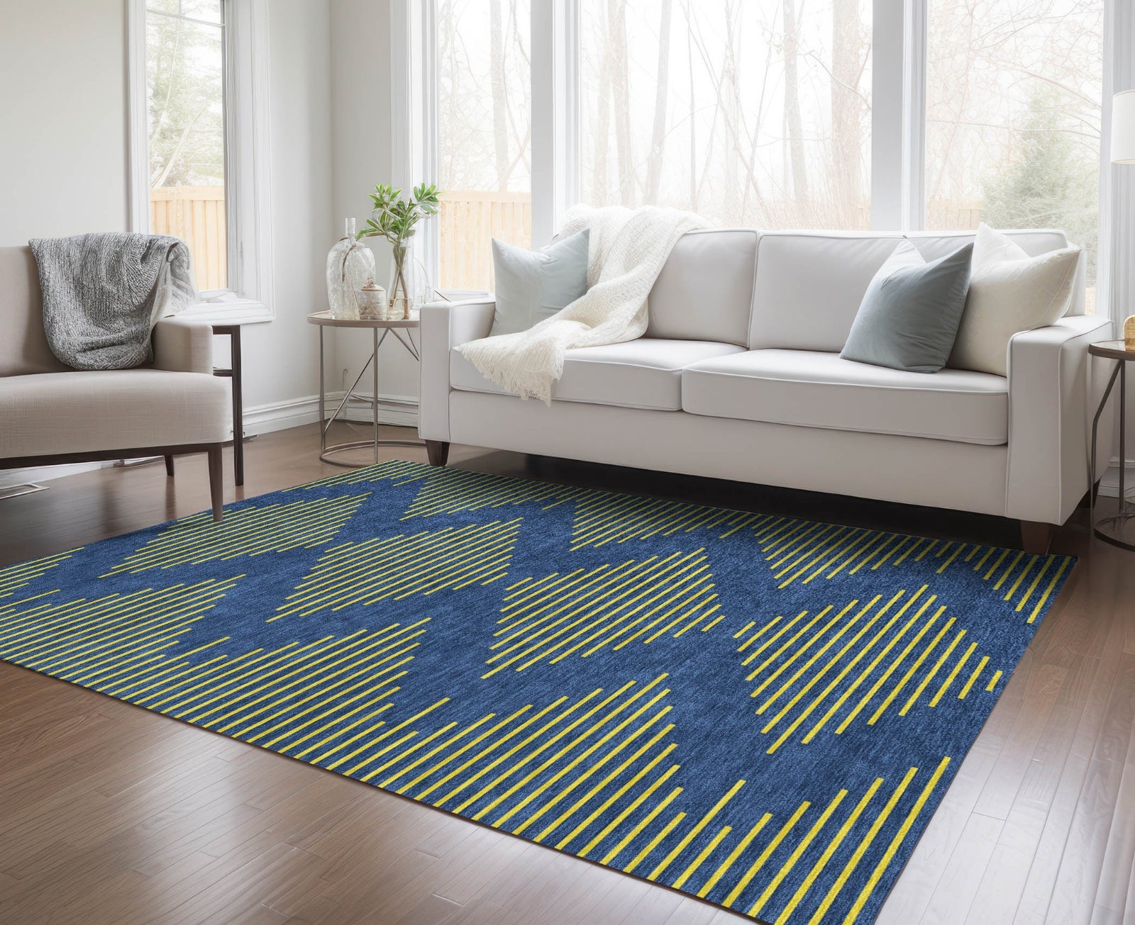 Piper Looms Chantille Geometric ACN1017 Navy Machine Washable Area Rug