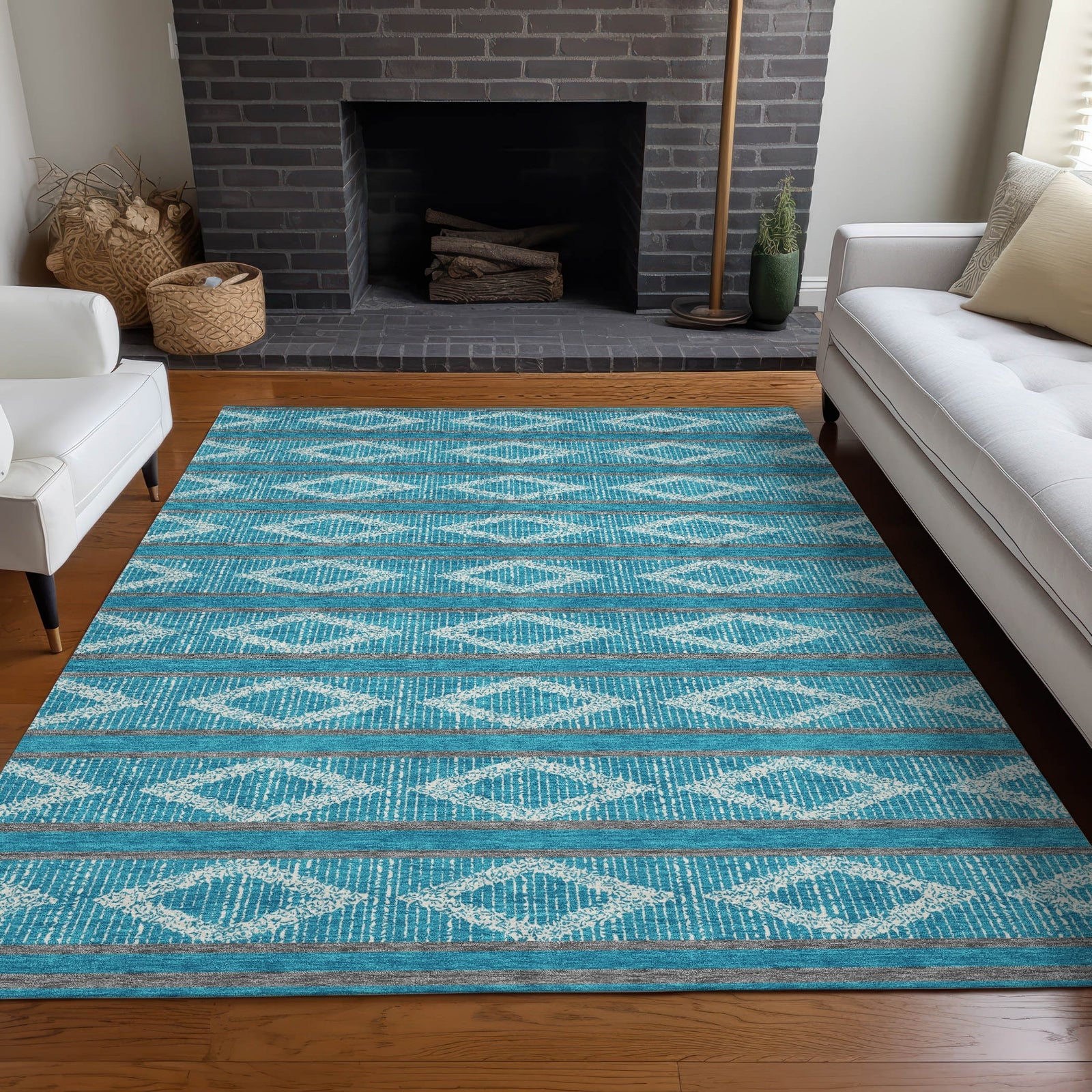 Reimagine your living space with our beautifully crafted area rug, where classic stripes meet contemporary diamond patterns in a geometric layout ideal for transitional decor. This piece brings both style and functionality to your home. UV stabilized for durability, ultra-thin for ease of use, and machine-washable for quick cleaning, it's designed to accommodate the hectic pace of life in a house with pets and kids.