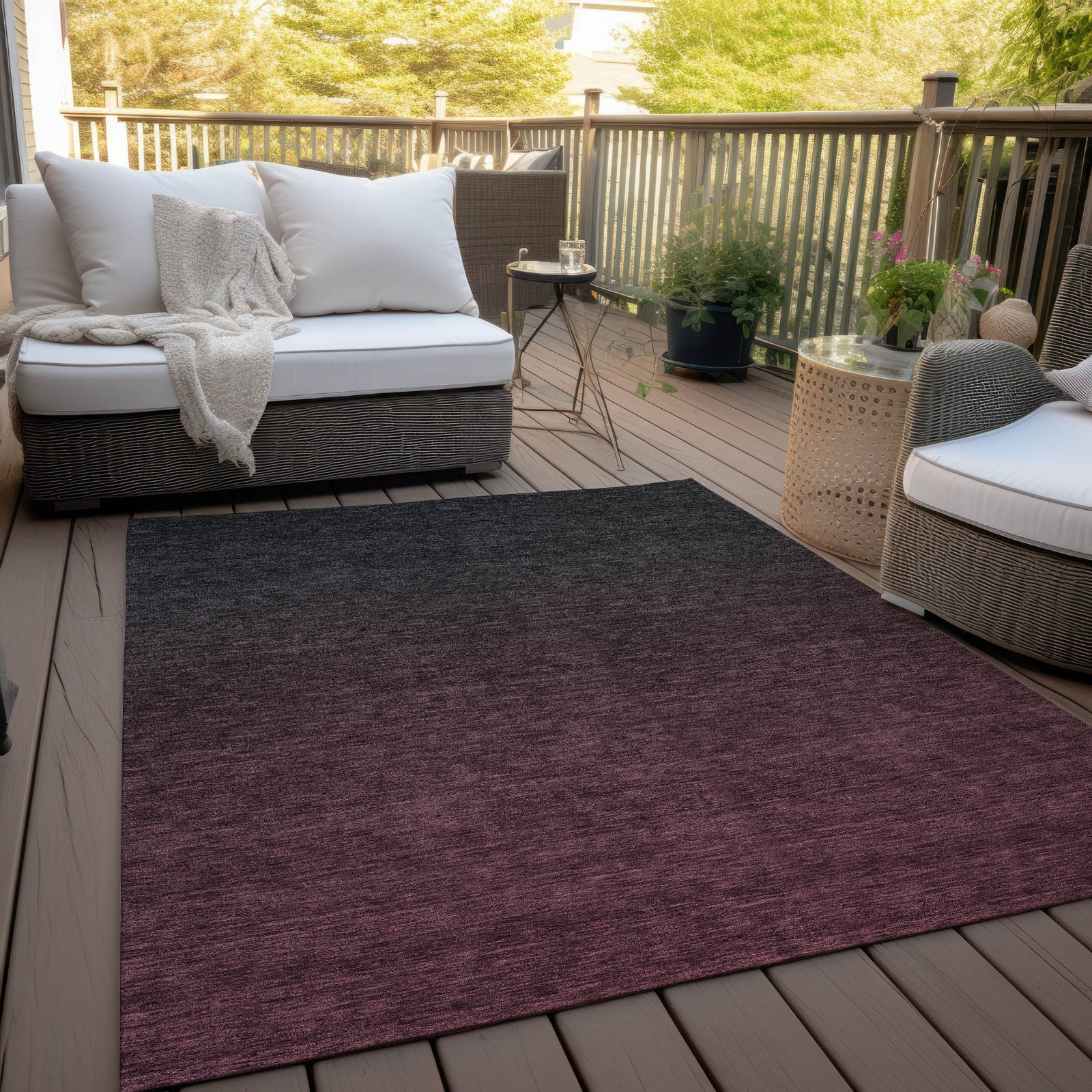 • UV Stabilized For Indoor or Outdoor Use. All rugs exposed to long periods of intense and direct sunlight can experience loss of color over time. Our rugs perform best in covered outdoor areas and uncovered areas with lower hours of direct sunlight.
