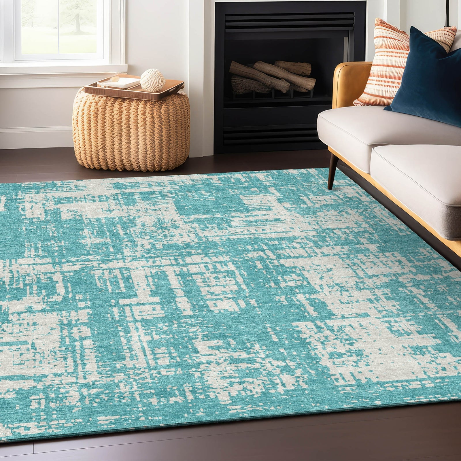 Our area rug, with its irregular shapes and transitional modern pattern, brings a fresh, contemporary vibe to any space. It's where design meets functionality. Perfect for any location, it's UV stabilized for both indoor and outdoor use. The ultra-thin design ensures easy placement, and being machine-washable, it's a breeze to maintain. Plus, its suitability for families and pets makes it an ideal choice for a lively household.