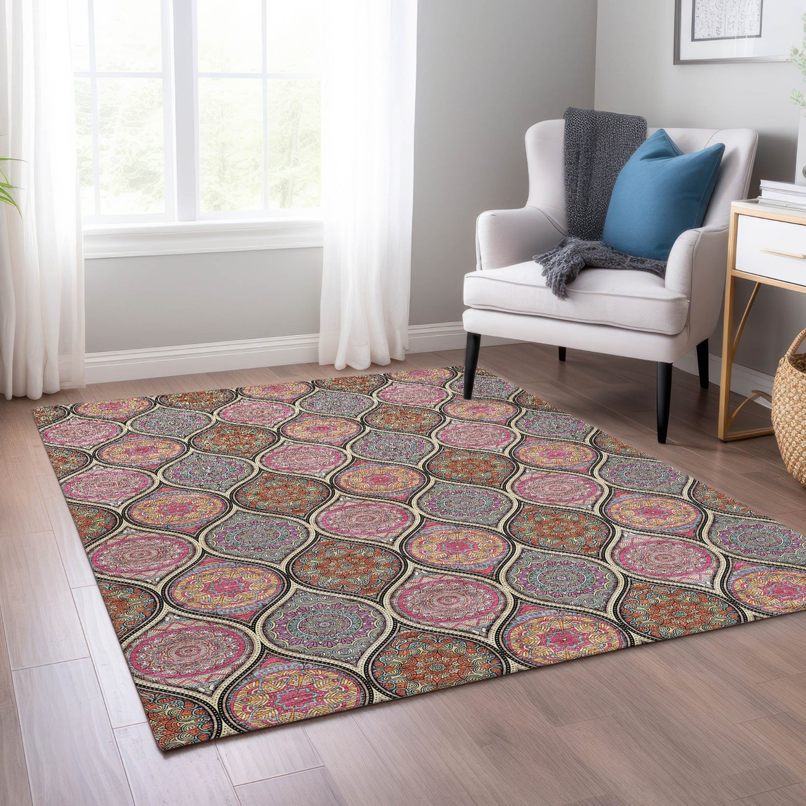 Discover the detailed artistry of our area rug, echoing the beauty of stained glass in a modern, transitional design. With UV stabilization for all environments, an ultra-thin profile for subtle sophistication, and machine-washable convenience, it's the perfect companion for homes that value both style and function, pets included.