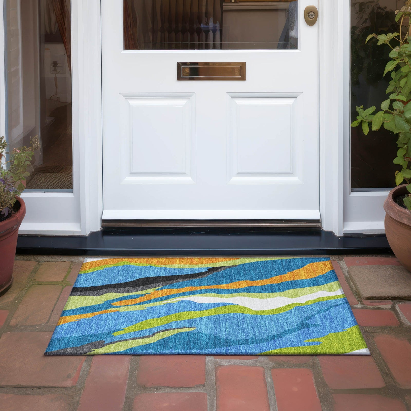 Step onto our chic area rug that features multi-shaped waves in a vertical design, blending transitional style with the natural rhythm of the tides. This rug is UV stabilized to resist sun damage, ultra-thin for seamless fitting, machine-washable for effortless maintenance, and built to be family and pet friendly, offering both style and substance.