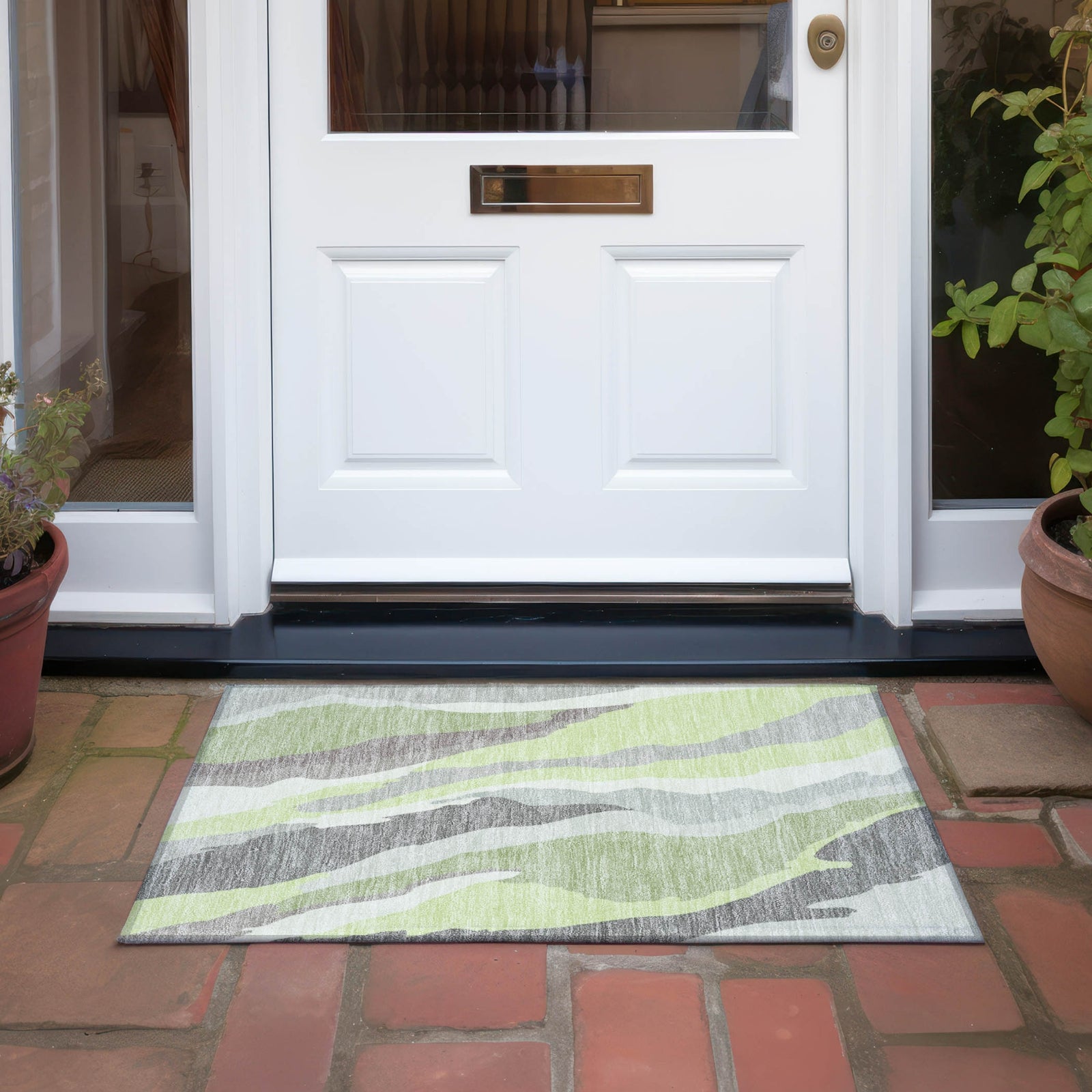 Step onto our chic area rug that features multi-shaped waves in a vertical design, blending transitional style with the natural rhythm of the tides. This rug is UV stabilized to resist sun damage, ultra-thin for seamless fitting, machine-washable for effortless maintenance, and built to be family and pet friendly, offering both style and substance.