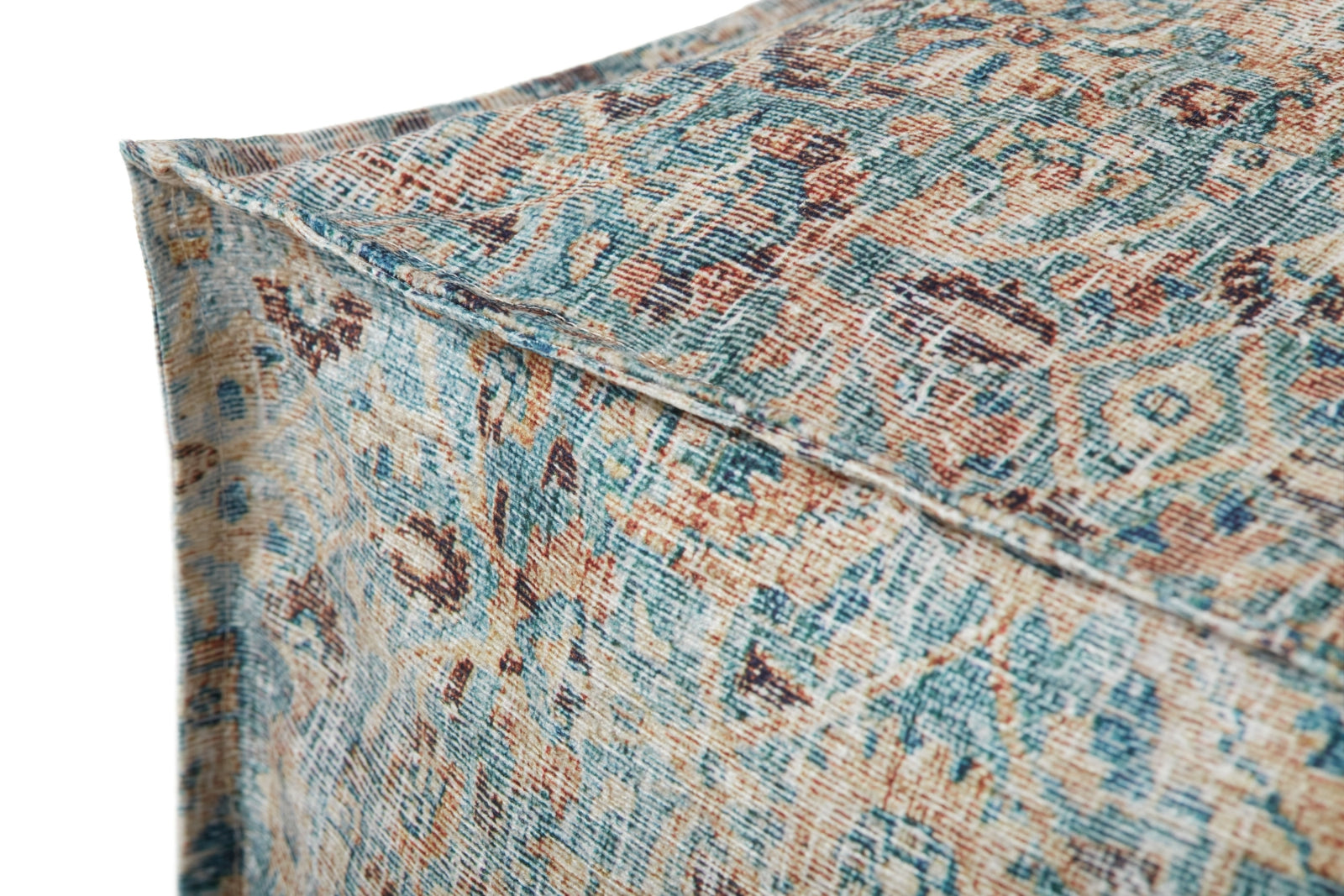 This vintage-inspired pouf with a traditional motif design can be used as an accent, an ottoman, or extra seating in your living room. The pouf measures 18''W x 18''D x 18''H and is machine-woven in China of soft, easy-to-clean polyester.