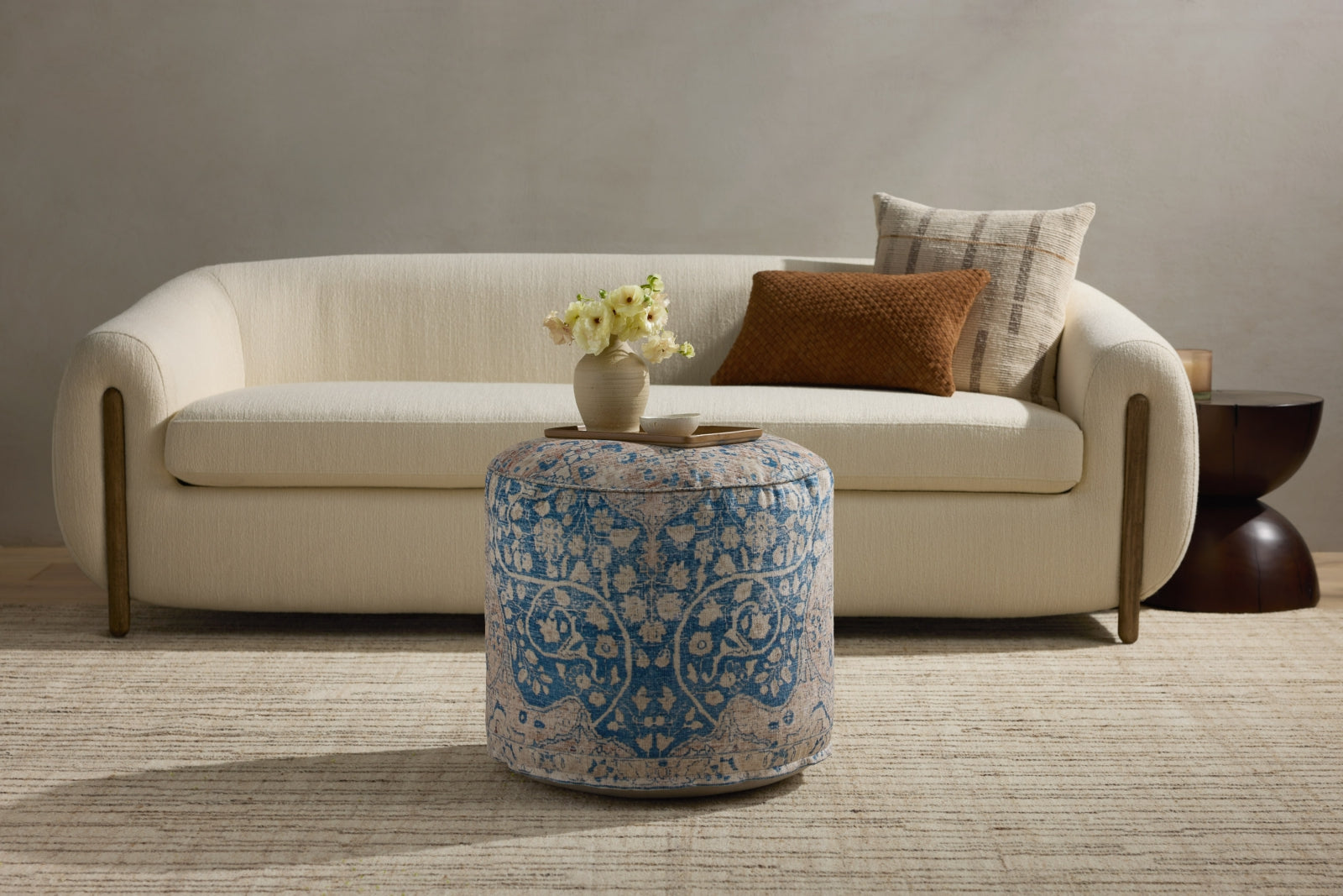 The sole representative of the Poufs collection, this pouf has no rival. It exudes harmonious texture and coloration that is pleasing to see and to touch.