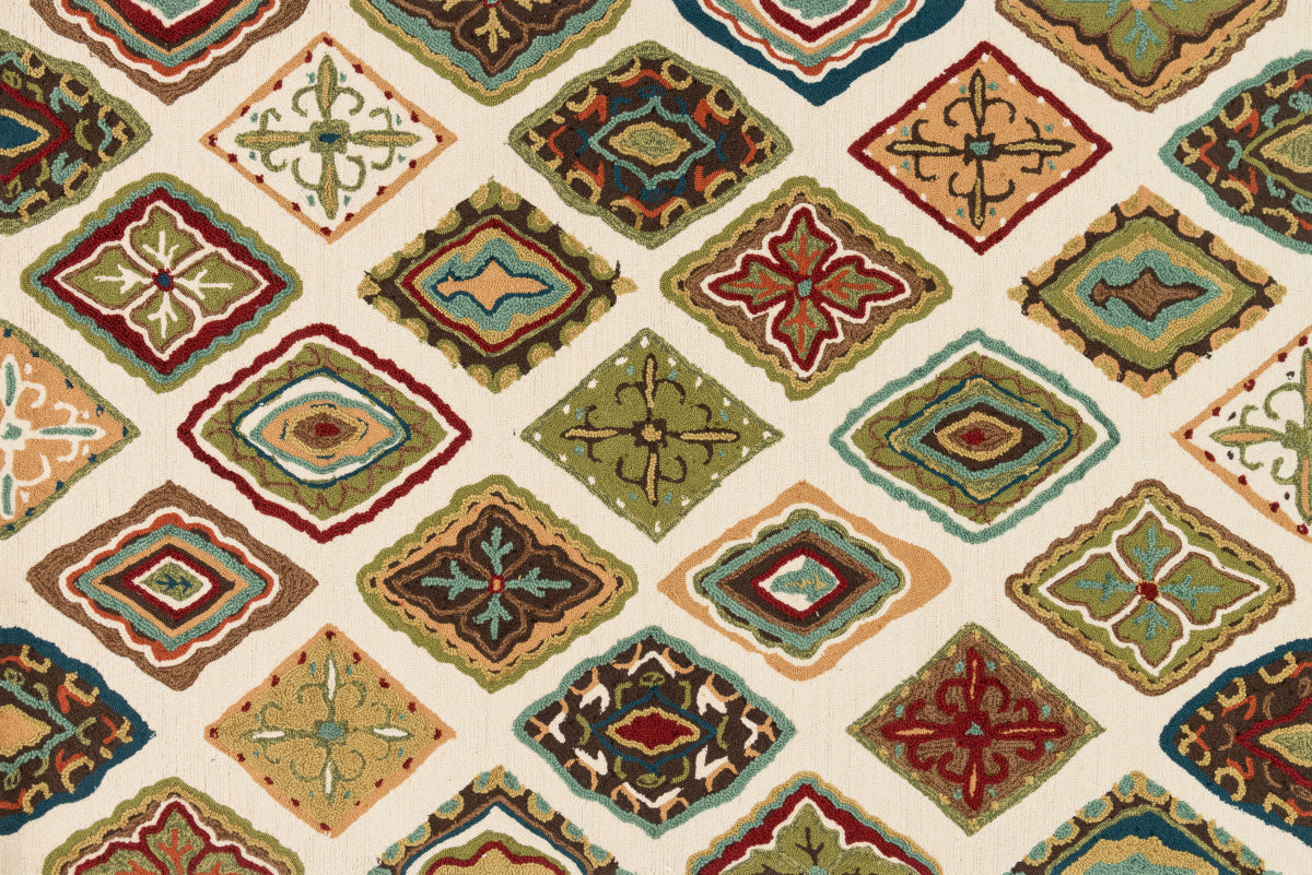 Everything you could want in a rug - gorgeous colors, eye-catching design, and extraordinary texture - is available in the Olivia Collection. From China, the hand-hooked polyester surface features a high and low effect that adds a third dimension to these playful rugs. Not to mention, only the softest yarns have been selected in order to craft a luxurious covering for your floor. Go ahead - kick off your shoes and dig your feet into it.