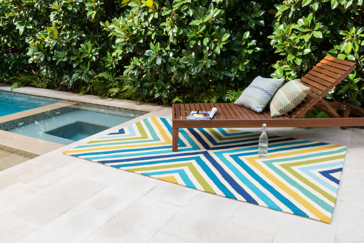 For the first time ever, world renowned designer Dann Foley brings his eye for great design and modern living to outdoorrugs. With patterns and colors as dynamic as Dann's persona, the Palm Springs Collection reflects Dann's passion forfun outdoor decorating. Palm Springs is hand hooked in China of 100% polypropylene that's specially treated to befade-resistant in spite of regular sunshine or rain.