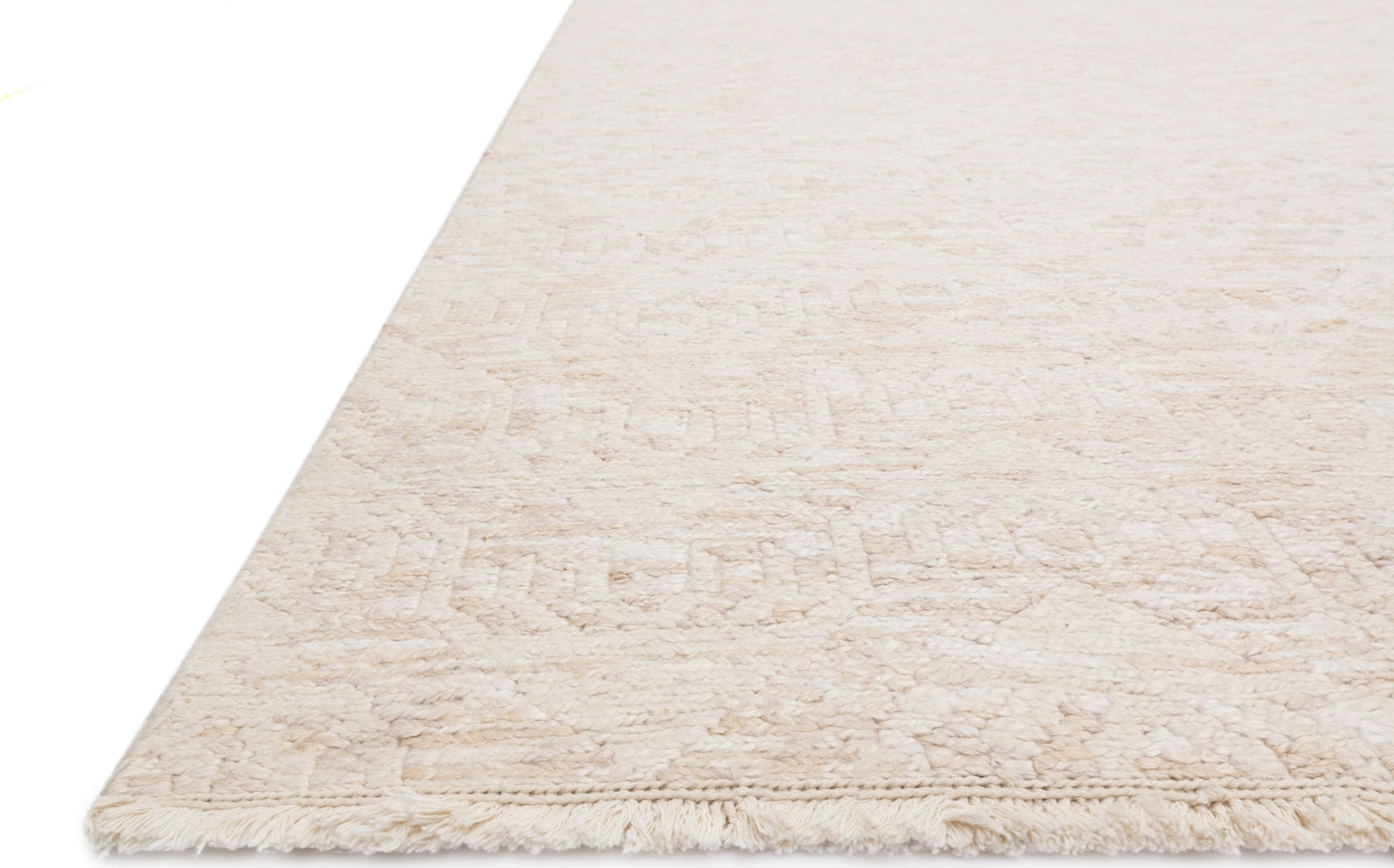 Hand knotted in India of 100% viscose from bamboo, the Reverie collection elevates your living space with subtle patterning hidden within a traditional sumac weave. Offered in soft neutrals and blues, each piece within this collection evokes a sense of calming elegance.