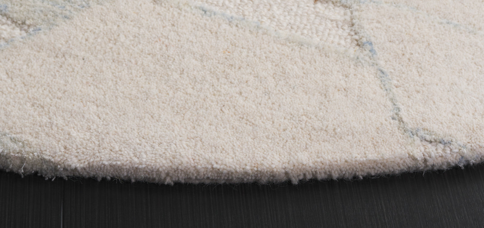 The Safavieh Mykonos Rug collection consists of 70% Wool, 20% Viscose, 10% Cotton pile woven in a wonderful Hand Tufted weave. With a beautiful color/pattern combination, our only complaint is that Safavieh didn't make more of them.