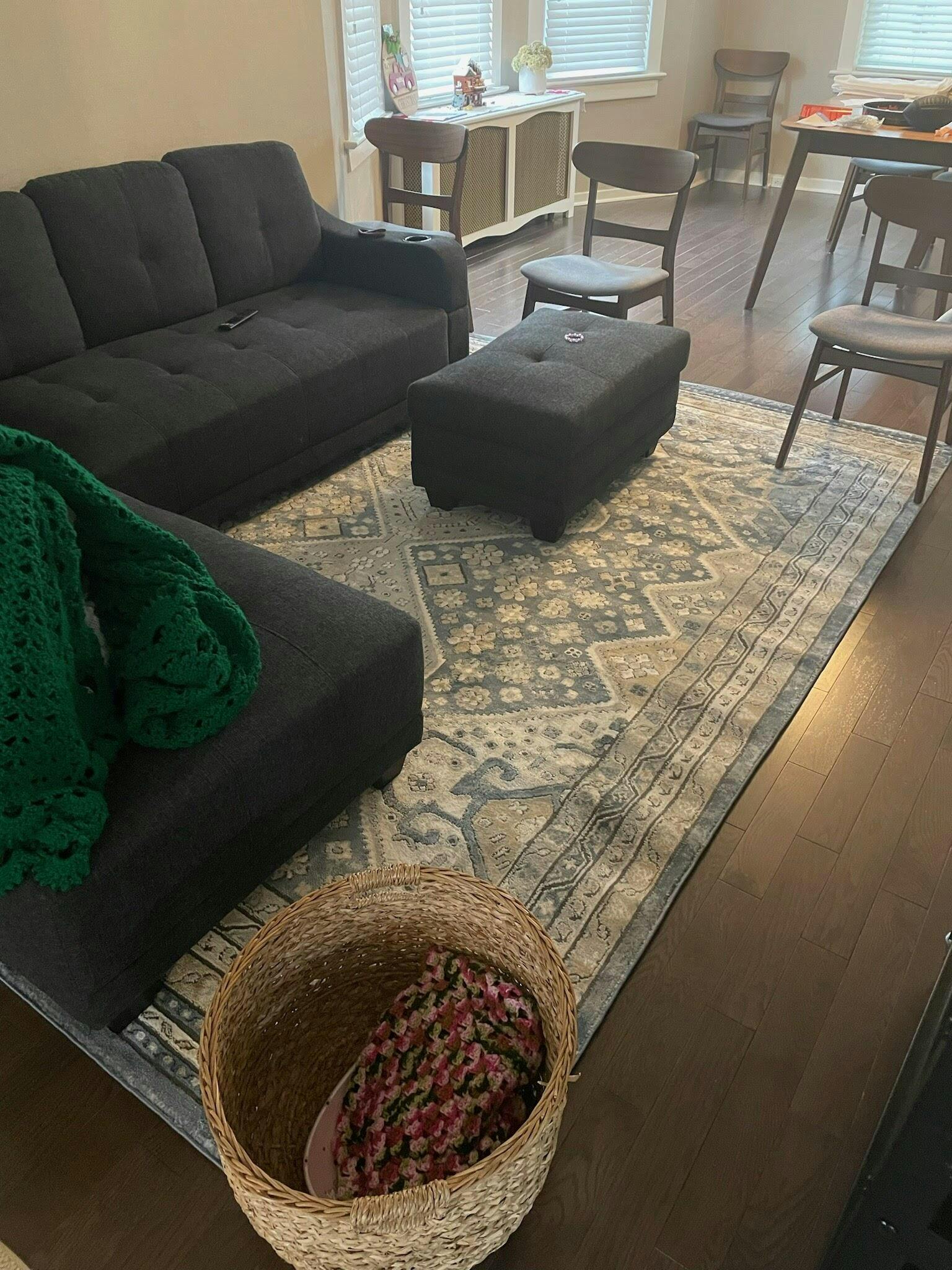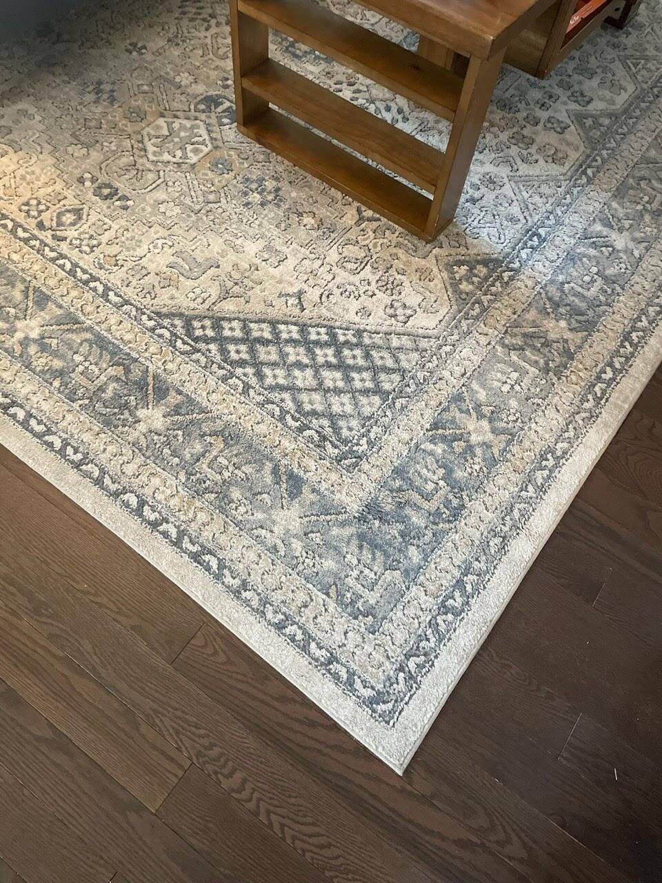 I bought this for my son and daughter in law, they already have the Surya Seattle in a slightly different pattern. That is what I thought I was getting but this one was substituted. They still love it as it's the same color family. I was very happy with how quickly they received it as well. They are in process of getting it to flatten out and it's better today than yesterday.